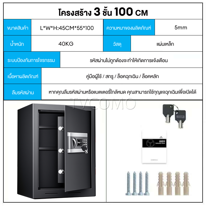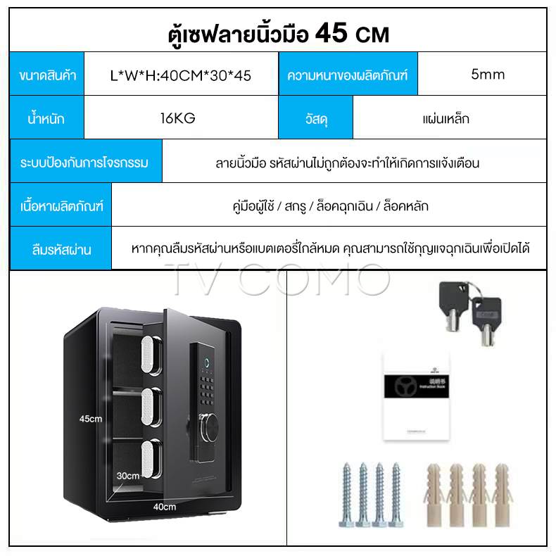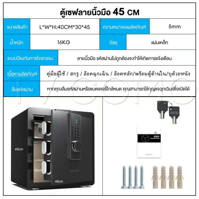 ตู้เซฟลายนิ้วมือ ตู้เซฟ 45cm Safe Box ระบบปลดล็อคเฉพาะสแกนลายนิ้วมือ/ล็อครหัส/กุญแจ รับประกันตลอดชีวิต หน้าจอสัมผัส