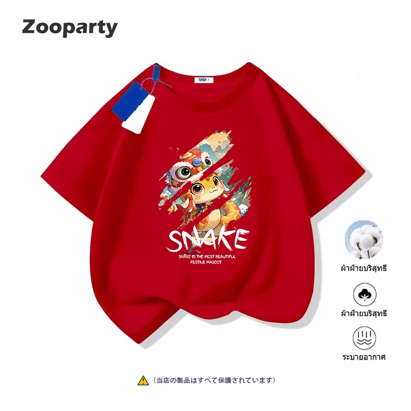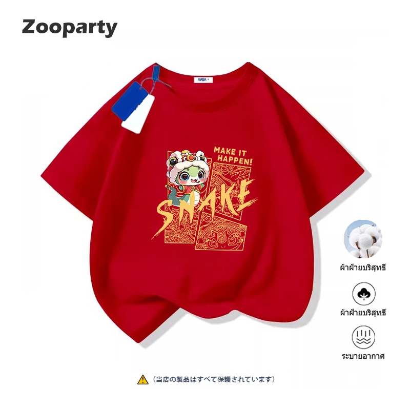 (จัดส่งตลอด 24 ชั่วโมง) เสื้อผ้าเด็ก happy new year 2025 สีแดงปีงู ผ้านุ่ม 100% cotton เสื้อยืดเด็ก สีแดง สวัสดีปีใหม่