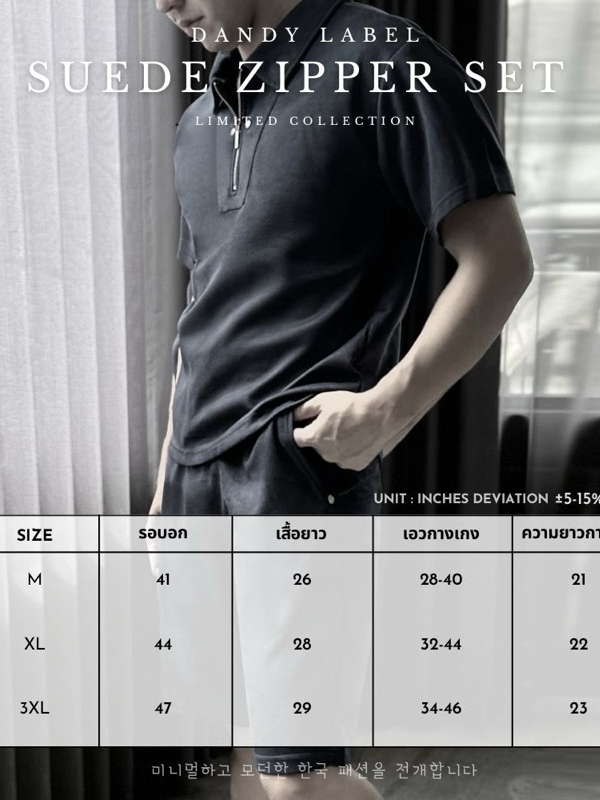 [3สี]ชุดเซ็ต ผ้าSuede หนังกลับ DANDY LABEL ดีไซน์ Smart Luxury Set เสื้อ+กางเกง Limited Edition หมดแล้วหมดเลย