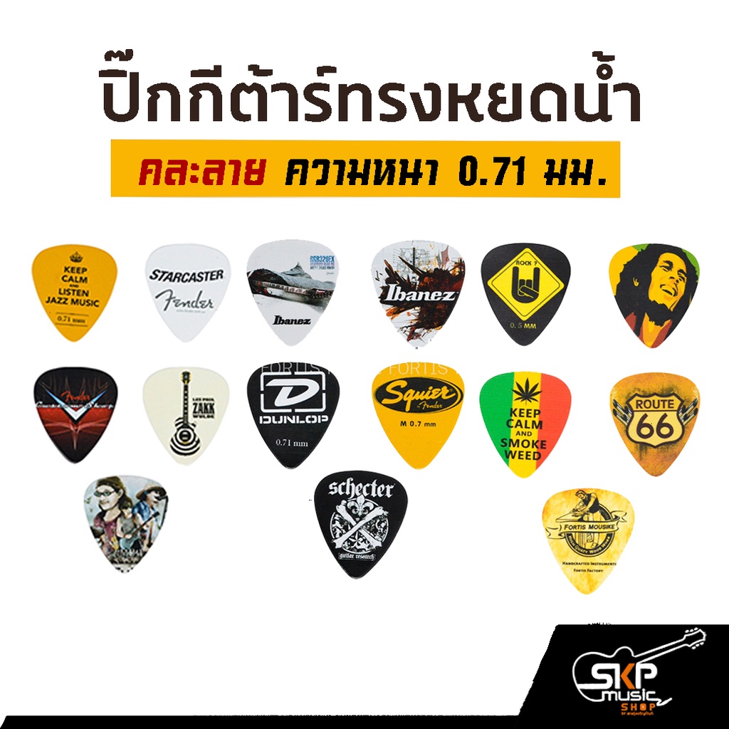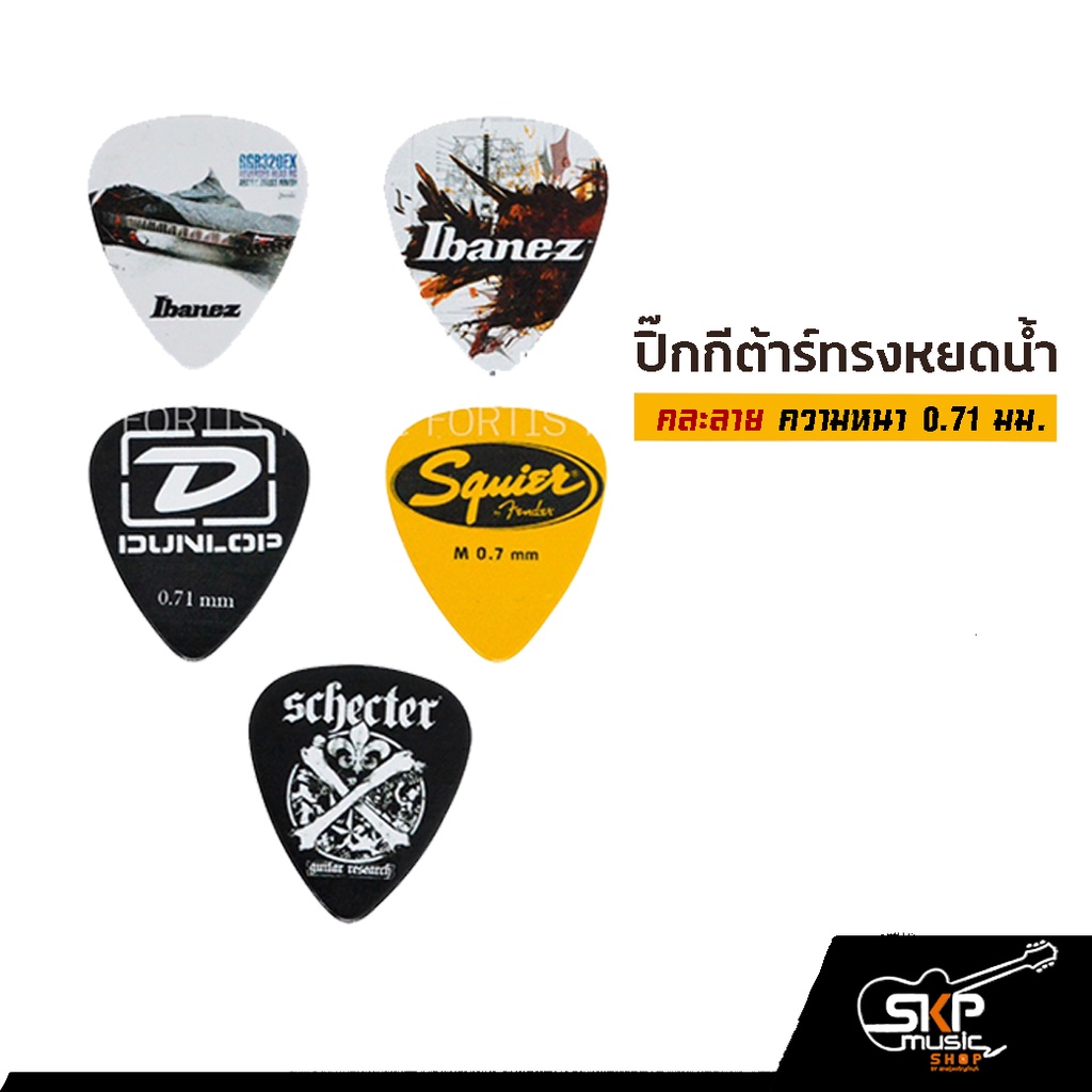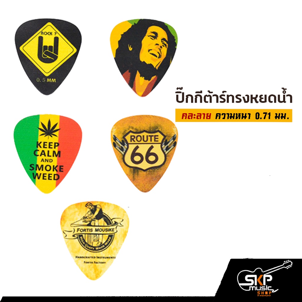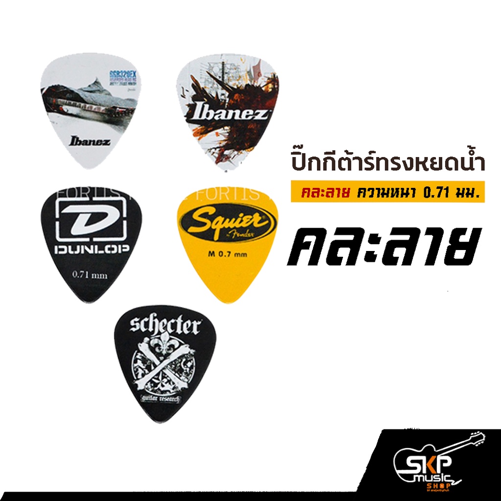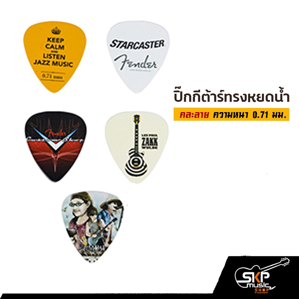 ปิ๊กกีต้าร์ ทรงหยดน้ำ คละลาย ความหนา 0.71 มม.