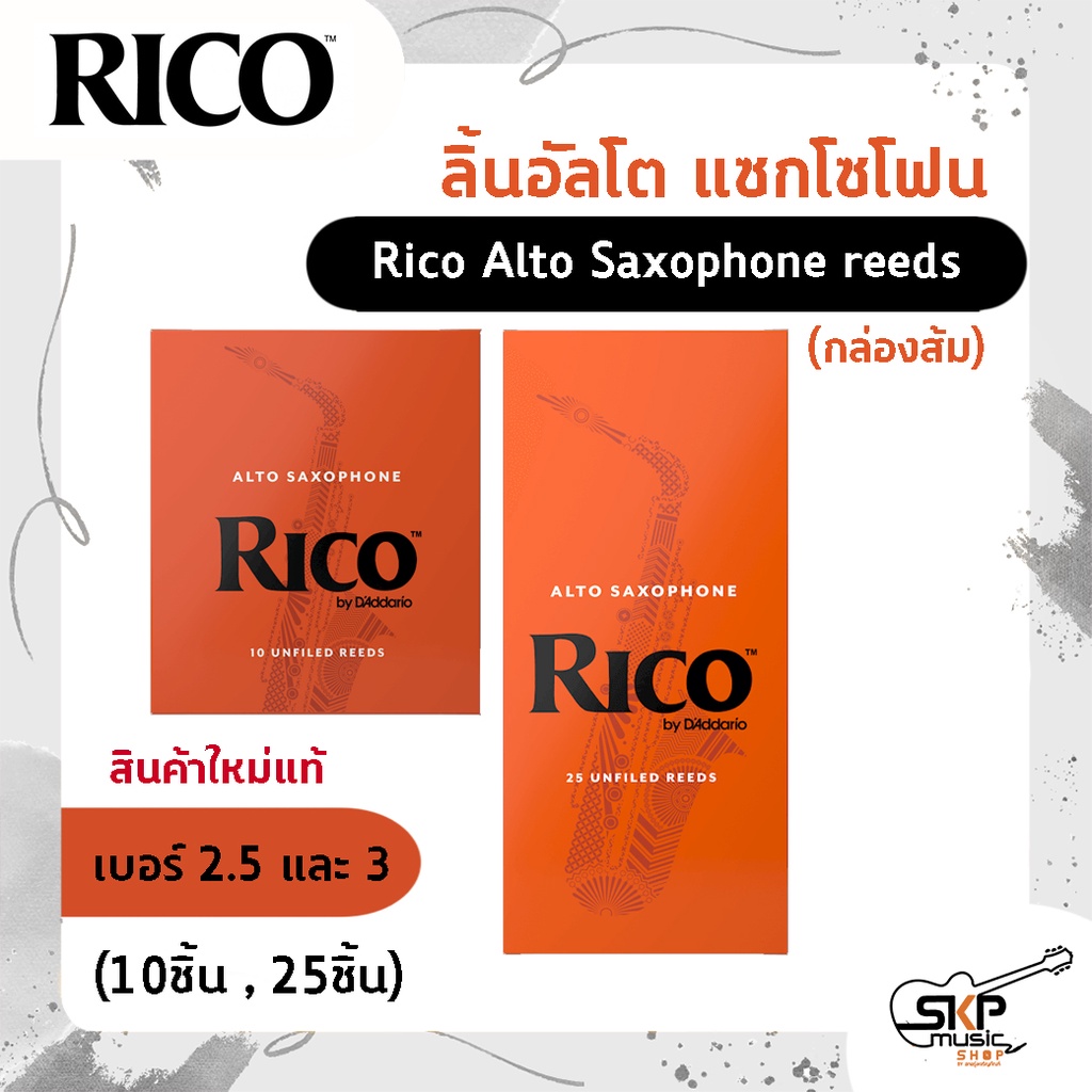 ลิ้นอัลโต แซกโซโฟน Rico Alto Saxophone reeds (กล่องส้ม) สินค้าใหม่แท้ (10ชิ้น , 25ชิ้น)