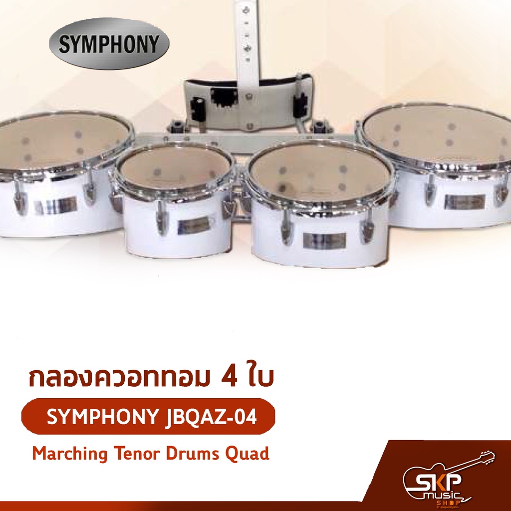 กลองควอททอม 4 ใบ SYMPHONY JBQAZ-04 Marching Tenor Drums Quad แถมชุดอาร์มสะพาย , ไม้ตีกลอง , กุญแจกลอง