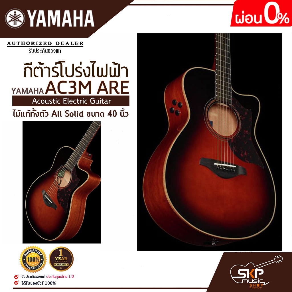กีต้าร์โปร่งไฟฟ้า ไม้แท้ทั้งตัว All Solid ขนาด 40 นิ้ว Acoustic Electric Guitar YAMAHA AC3M ARE