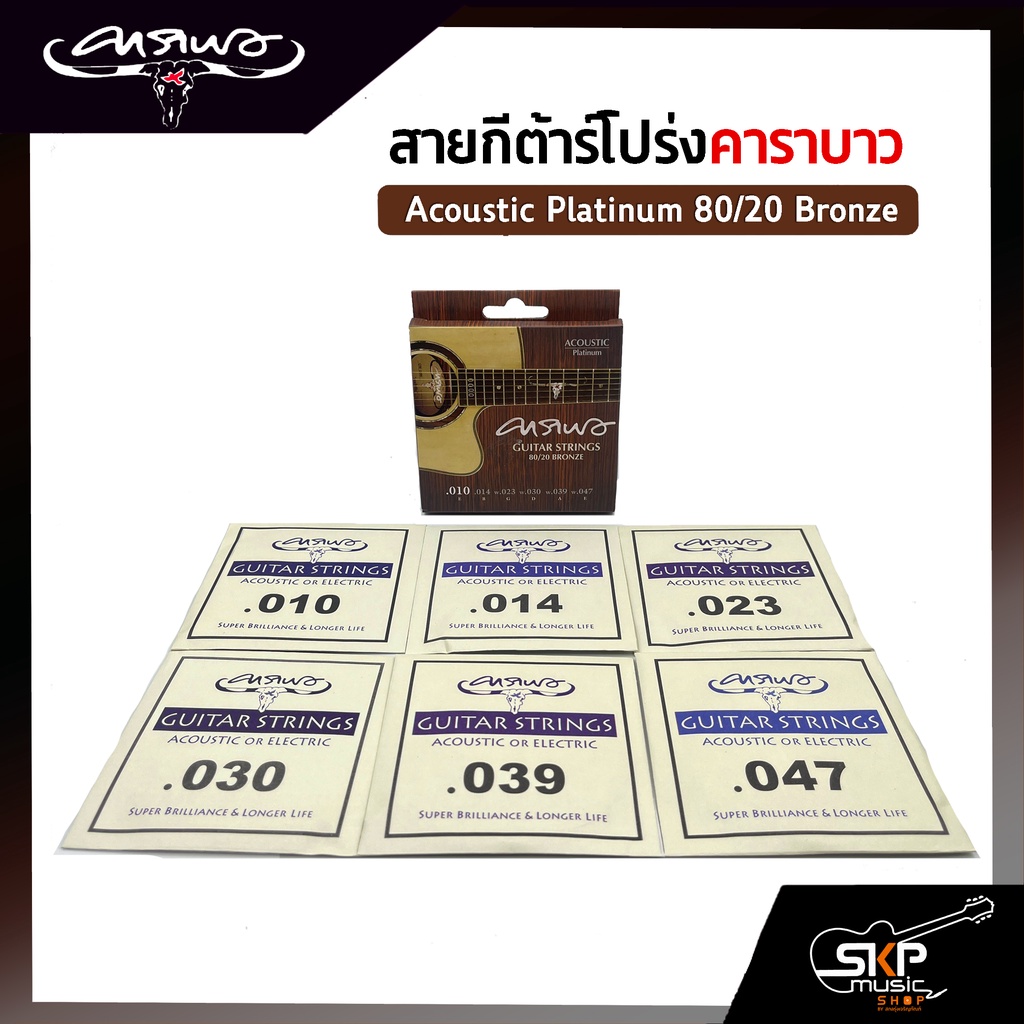 สายกีต้าร์โปร่งคาราบาว CARABAO แบบชุด Acoustic Platinum 80/20 Bronze