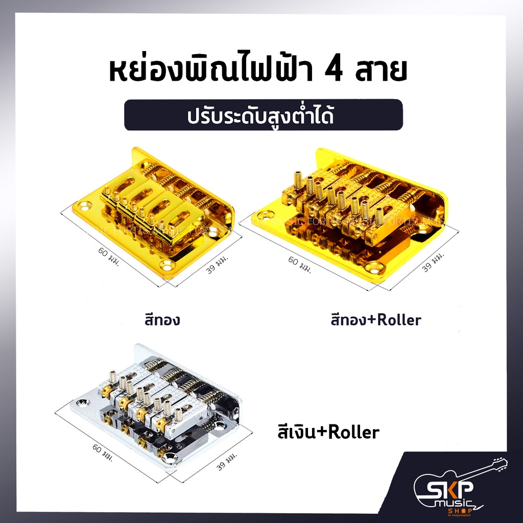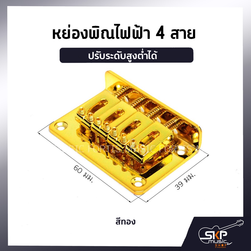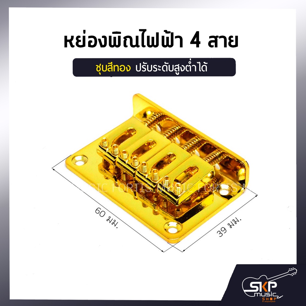 หย่องพิณไฟฟ้า 4 สาย ชุบสีทอง ปรับระดับสูงต่ำได้
