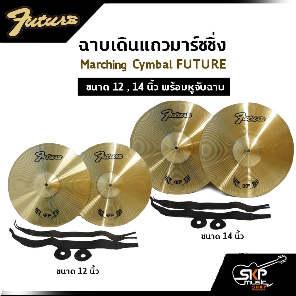 ฉาบเดินแถวมาร์ชชิ่ง Marching Cymbal FUTURE ขนาด 12 , 14 นิ้ว พร้อมหูจับฉาบ