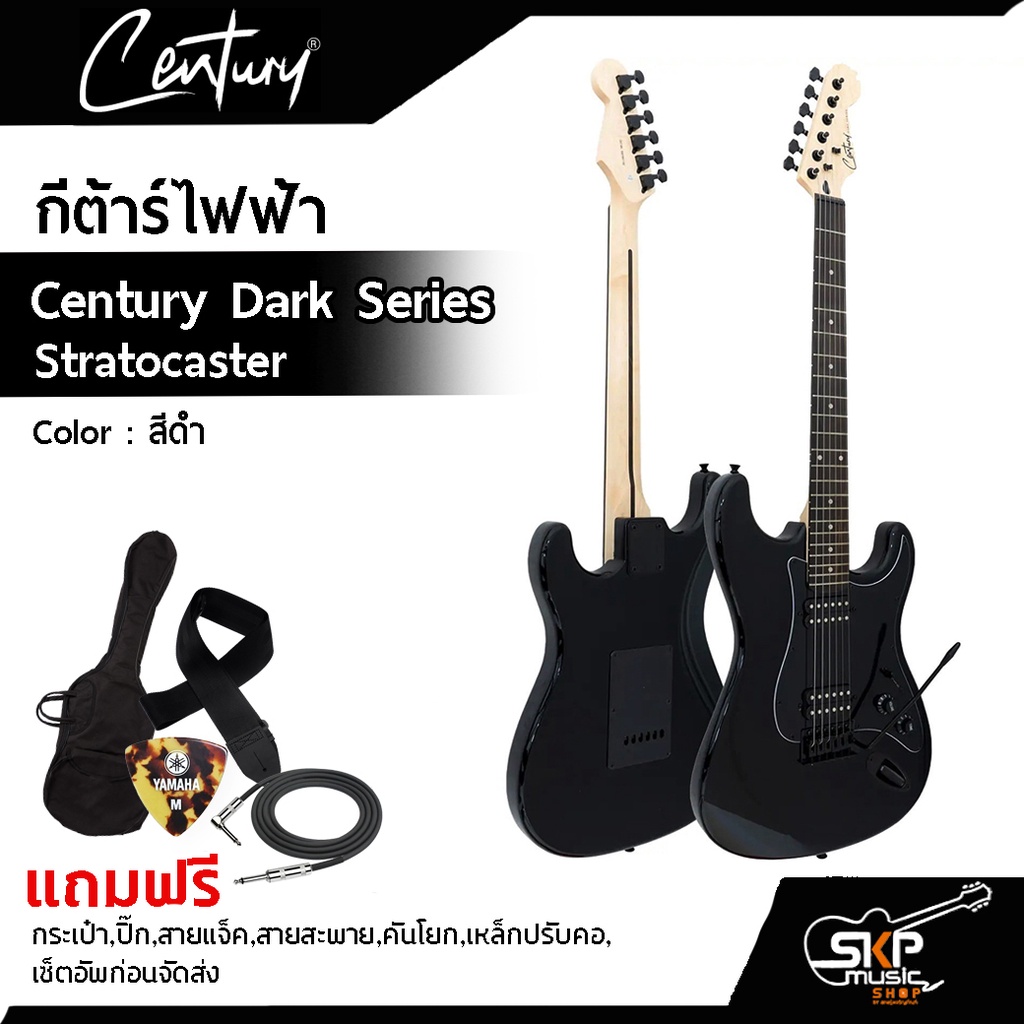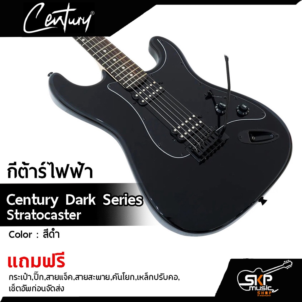กีตาร์ไฟฟ้า Century Dark Series Stratocaster แถมกระเป๋า,ปิ๊ก,สายแจ็ค,สายสะพาย,คันโยก,เหล็กปรับคอ,เซ็ตอัพก่อนจัดส่ง