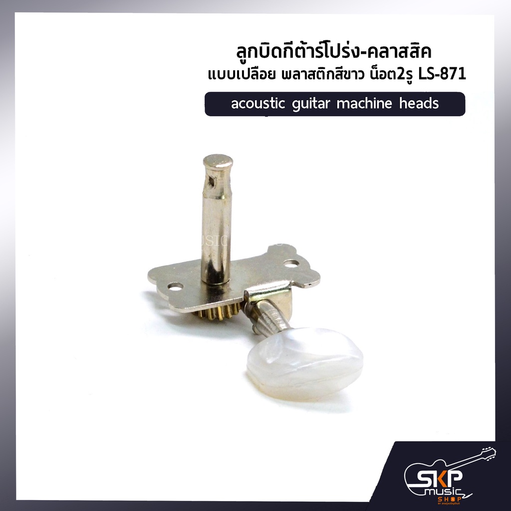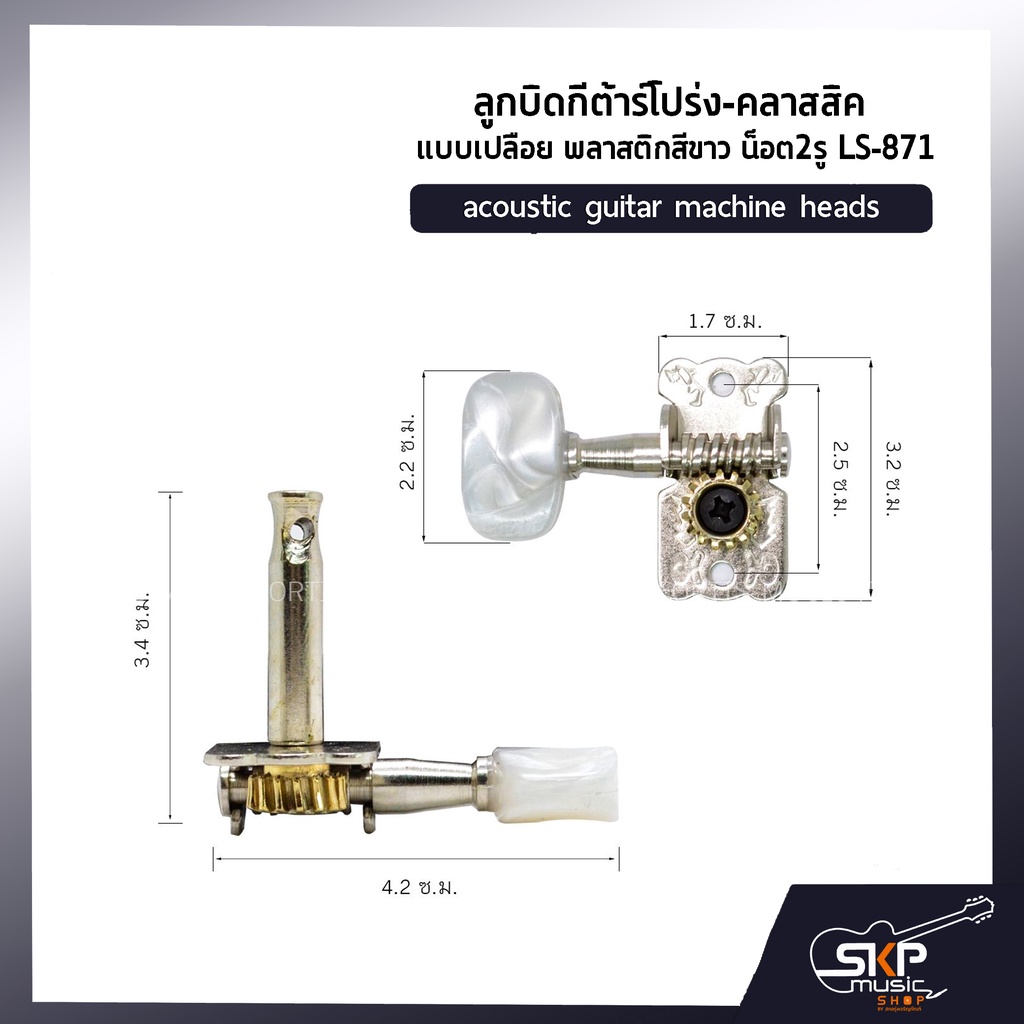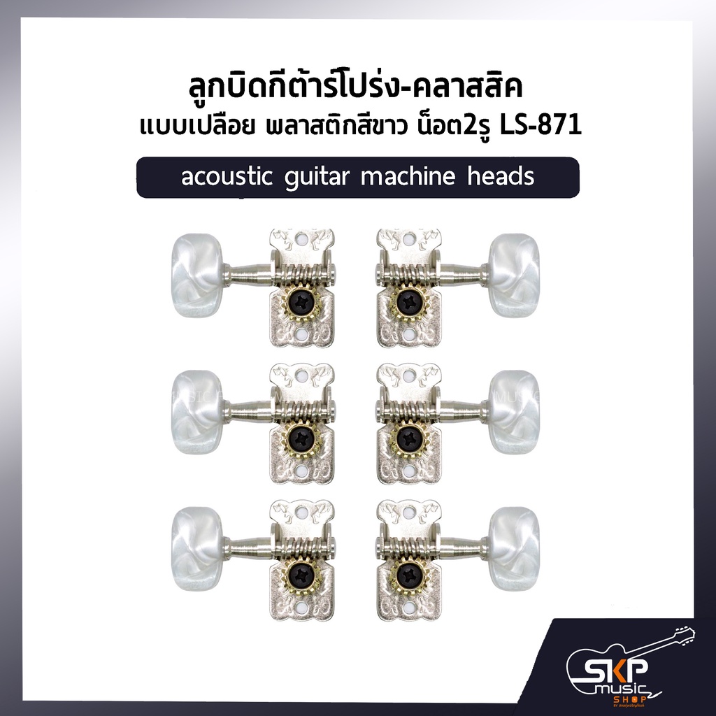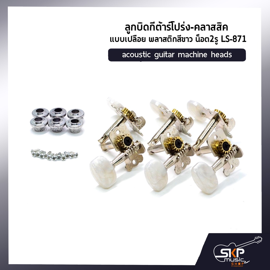 ลูกบิดกีต้าร์โปร่ง-คลาสสิค แบบเปลือย พลาสติกสีขาว น็อต2รู LS-871 acoustic guitar machine heads