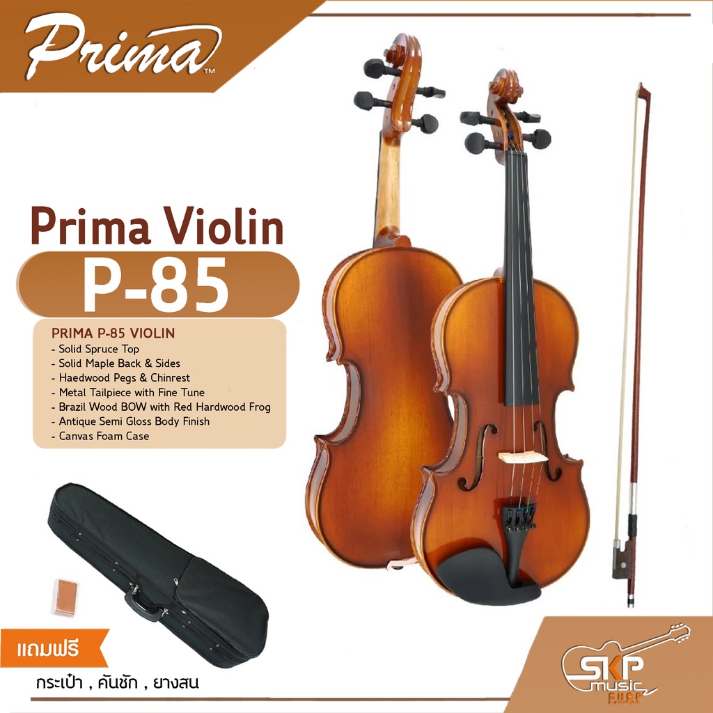 ไวโอลิน Prima Violin P-85 ขนาด 1/2,1/4,3/4,4/4 ไม้หน้าสปรูซแท้ ไม้หลังและข้างเมเปิลแท้ แถมกระเป๋าผ้าบุกันกระแทก คันชัก