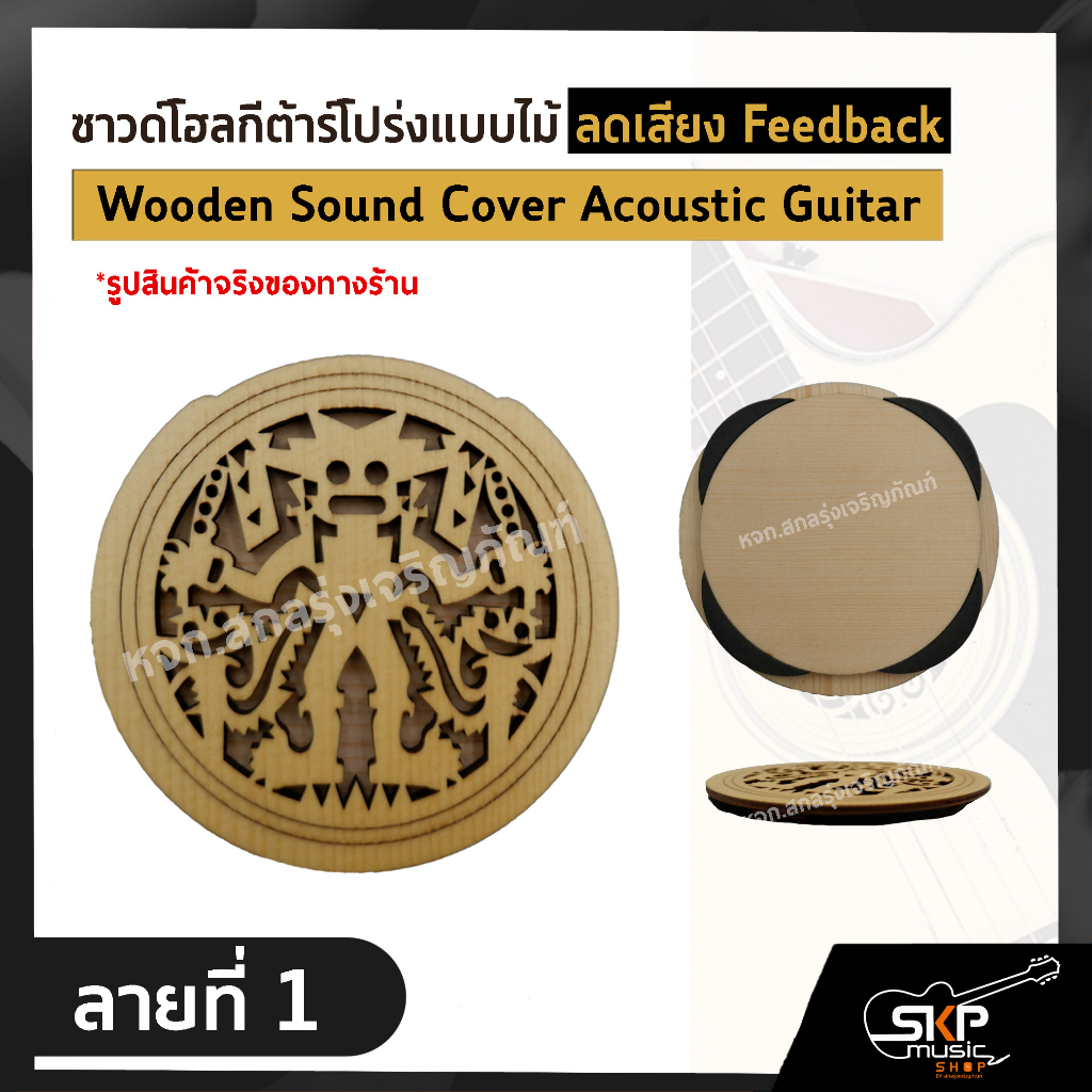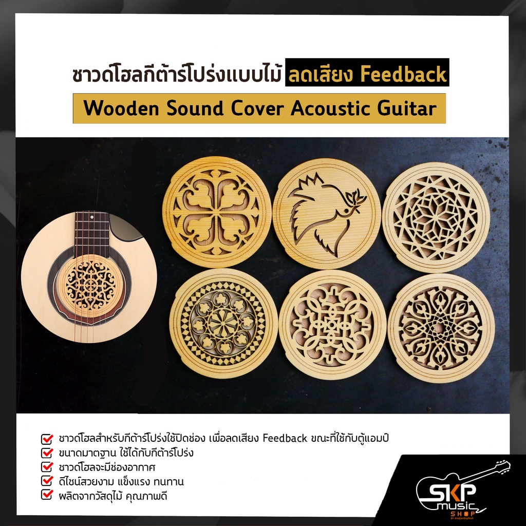 แผ่นปิด ซาวด์โฮล กีต้าร์โปร่งแบบไม้ ลดเสียงหอน Feedback Wooden Sound Cover Acoustic Guitar