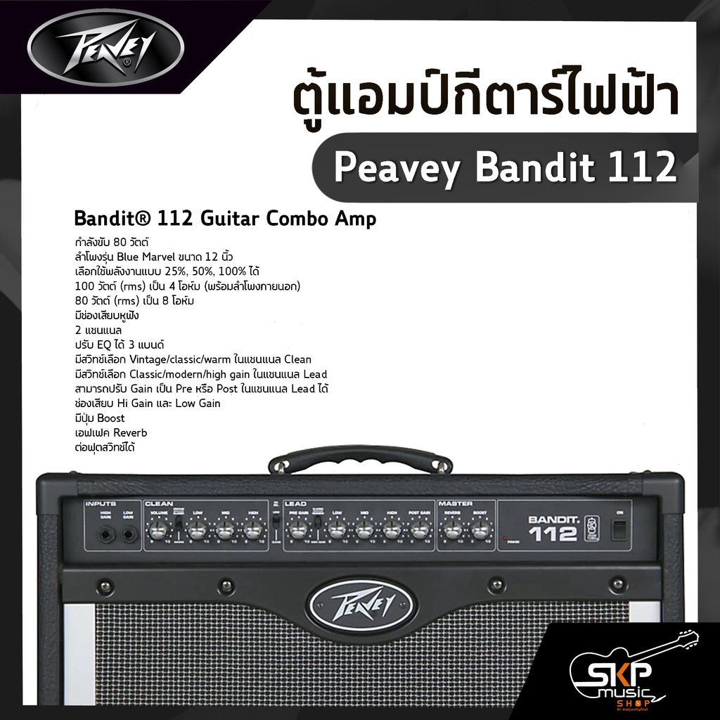 ตู้แอมป์กีตาร์ไฟฟ้า Peavey Bandit 112 80 วัตต์ ลำโพง Blue Marvel 12 นิ้ว เหมาะสำหรับขึ้นเวที ประกัน 1 ปี