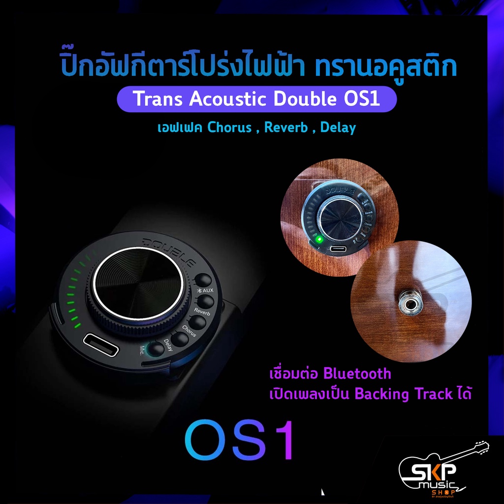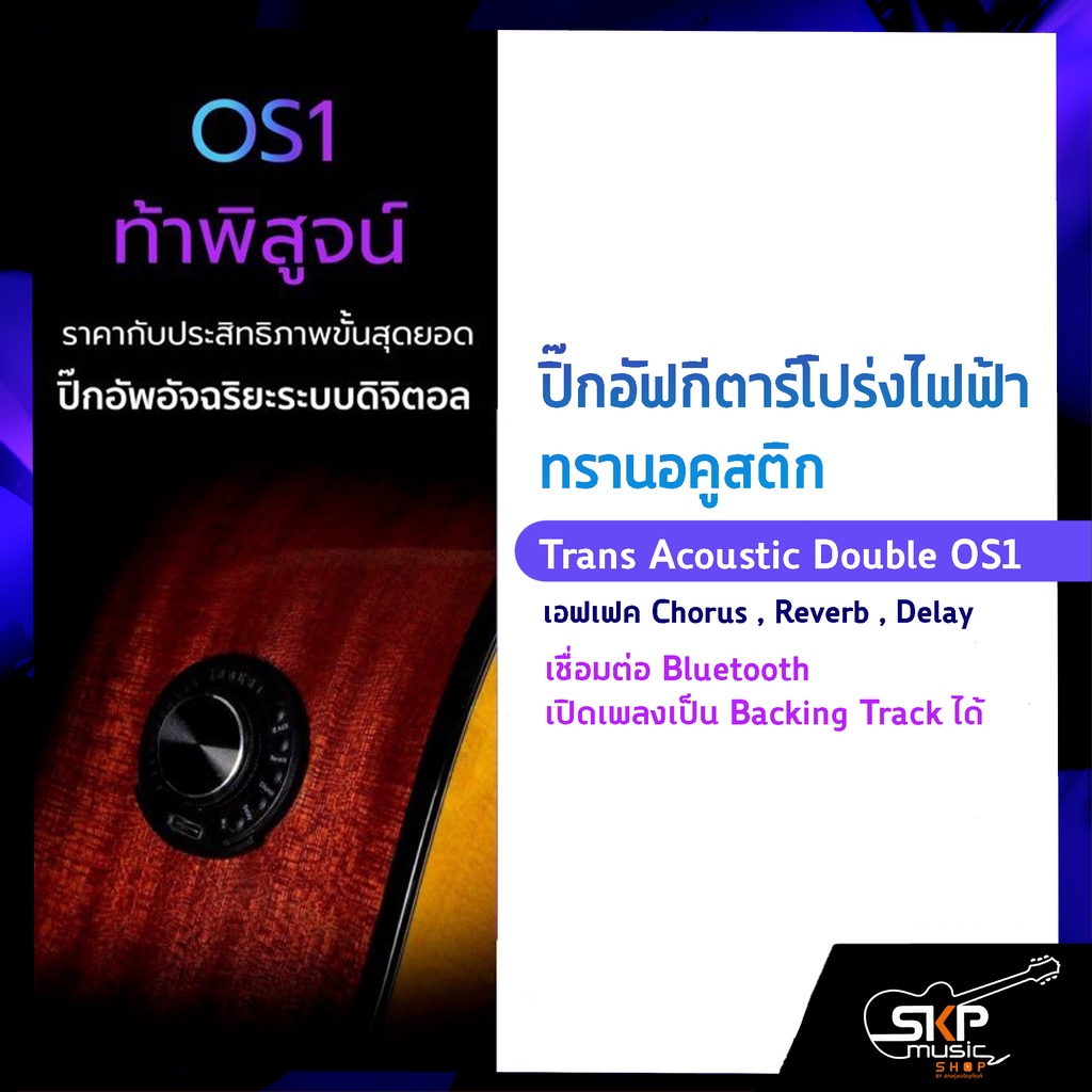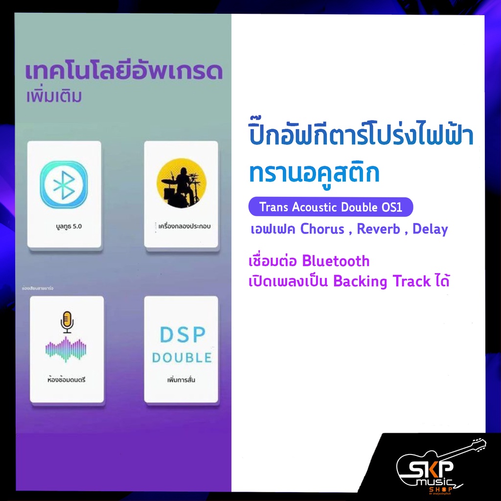 ปิ๊กอัฟกีตาร์โปร่งไฟฟ้า ทรานอคูสติก Trans Acoustic Double OS1 เอฟเฟค Chorus , Reverb , Delay เชื่อมต่อ Bluetooth