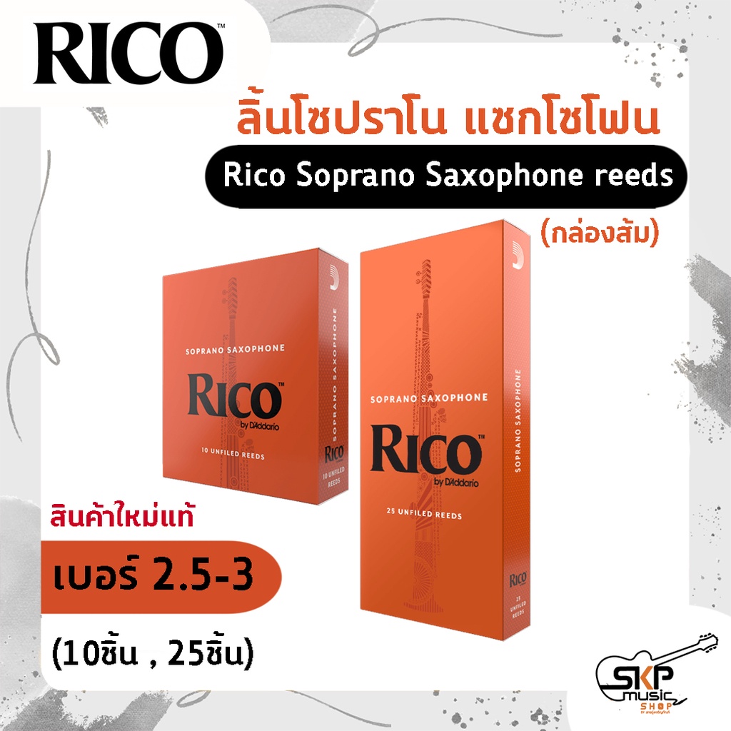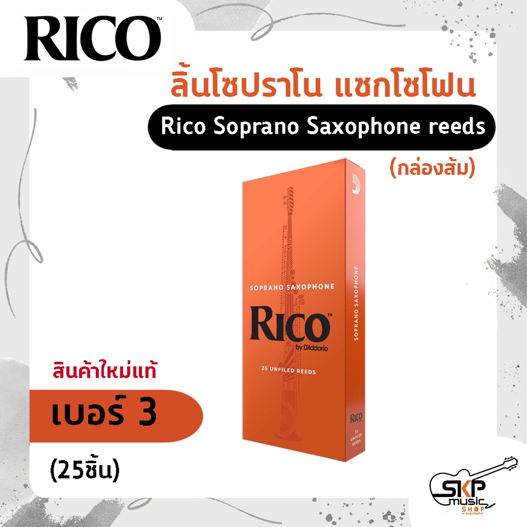 ลิ้นโซปราโน แซกโซโฟน Rico Soprano Saxophone reeds (กล่องส้ม) สินค้าใหม่แท้ (10ชิ้น , 25ชิ้น)