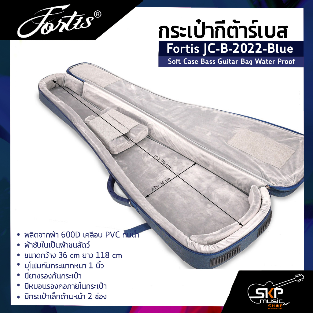 กระเป๋ากีต้าร์เบส Fortis JC-B-2022 ซอฟเคสผ้า 600D เคลือบ PVC กันน้ำ บุโฟมหนา 1 นิ้ว กันกระแทกได้