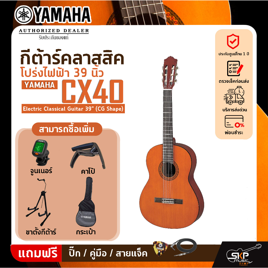 กีต้าร์คลาสสิค โปร่งไฟฟ้า 39 นิ้ว YAMAHA CX40 Electric Classical Guitar 39" (CG Shape)