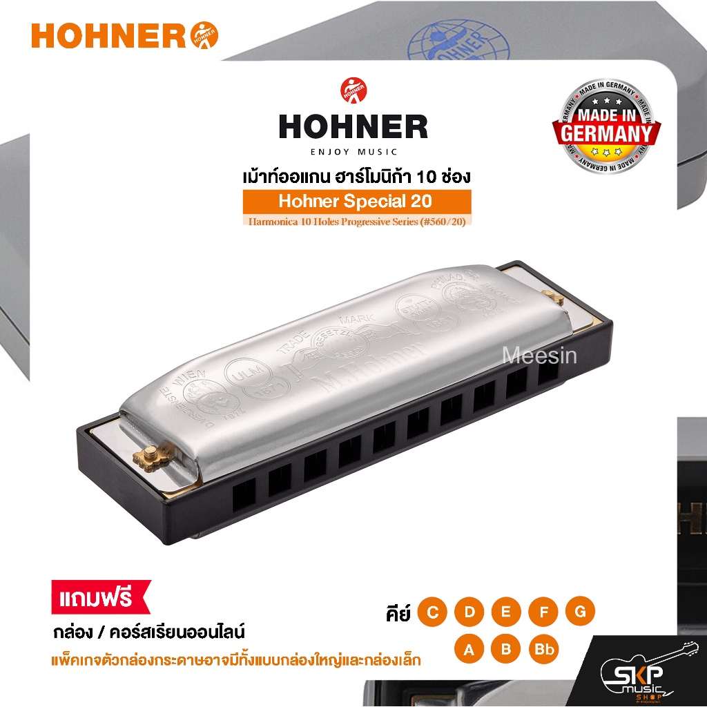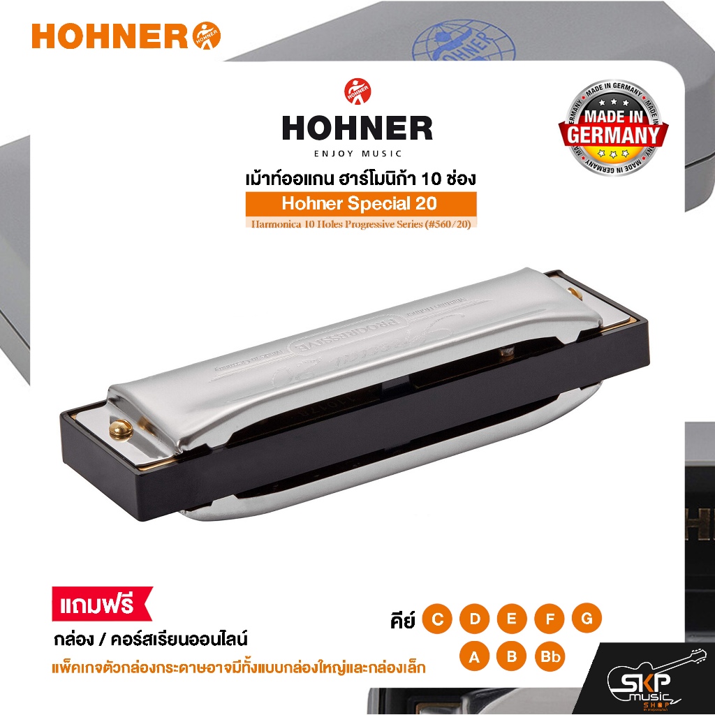 เม้าท์ออแกน ฮาร์โมนิก้า 10 ช่อง แถมกล่องและคอร์สเรียน Hohner Special 20 Harmonica 10 Holes Progressive Series (#560/20)