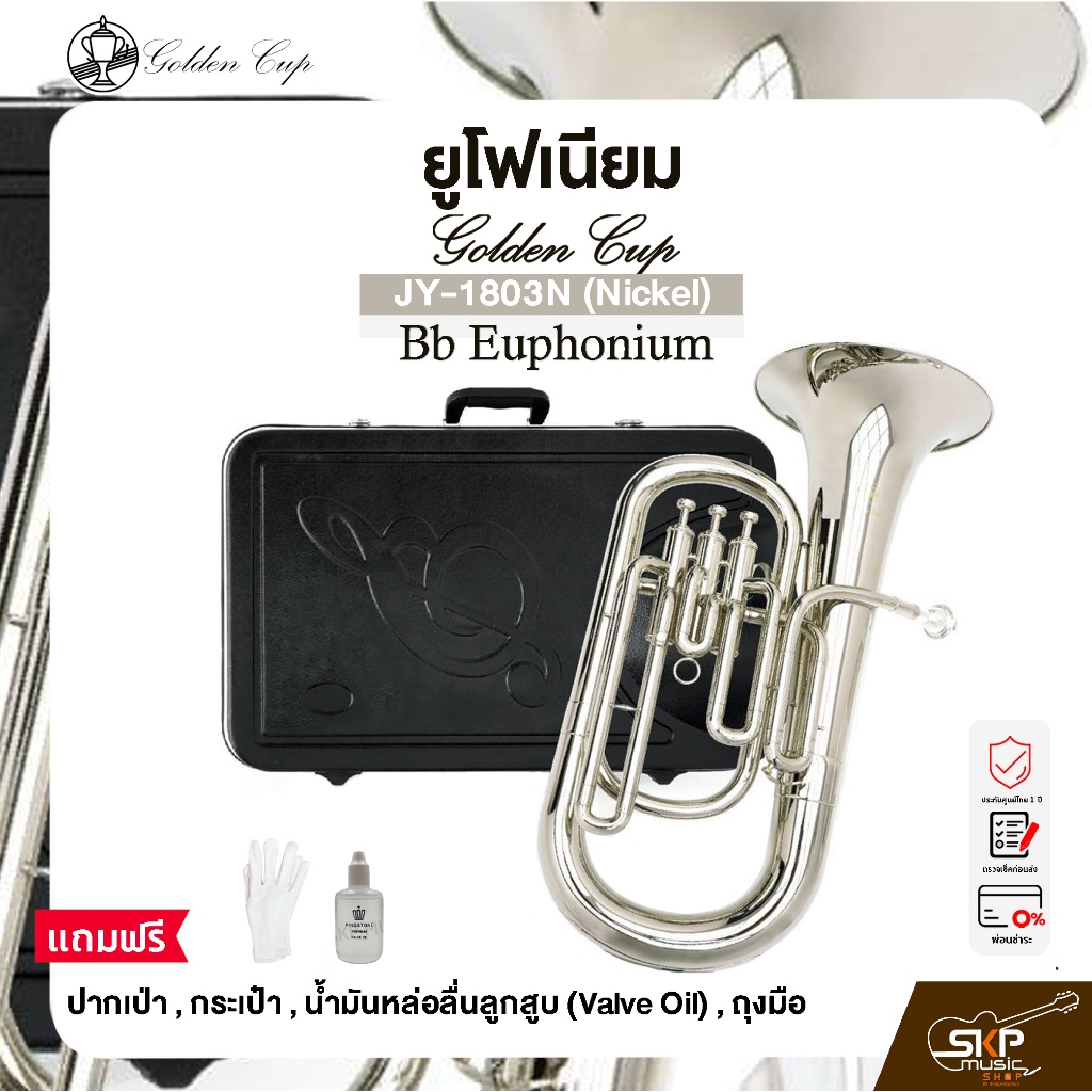 ยูโฟเนียม บีแฟลต สีนิกเกิล พร้อมอุปกรณ์ครบชุด Golden Cup JY-1803N (Nickel) Bb Euphonium