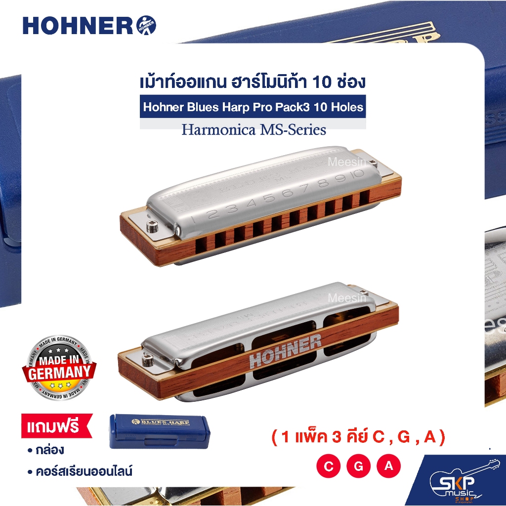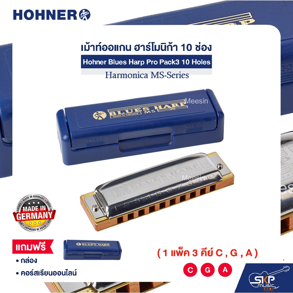 เม้าท์ออแกน ฮาร์โมนิก้า 10 ช่อง (แพ็ค 3 คีย์ C , G , A) Hohner Blues Harp Pro Pack3 10 Holes Harmonica MS-Series