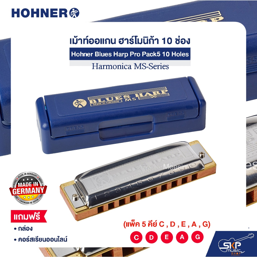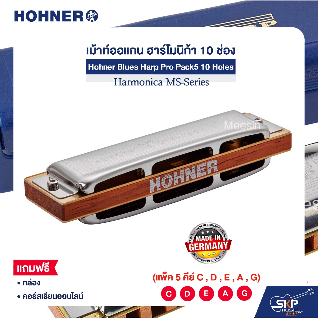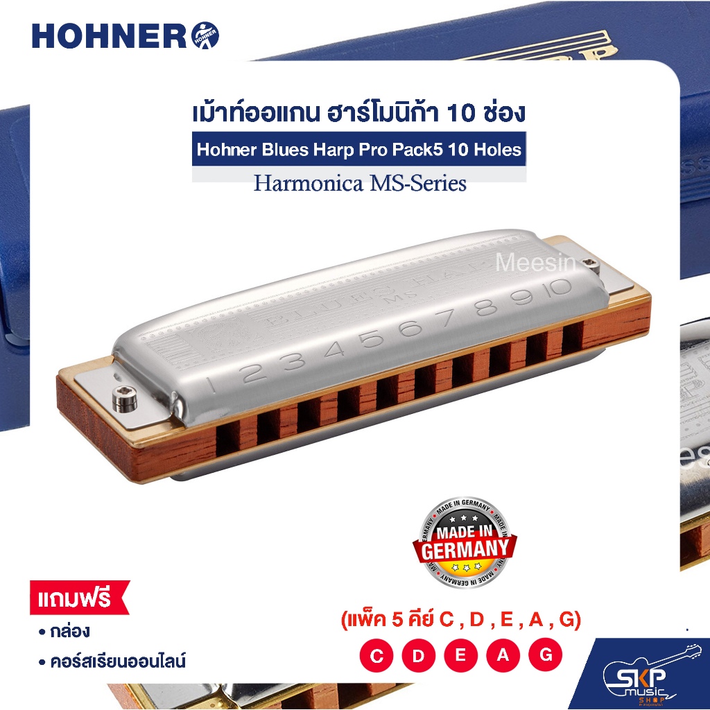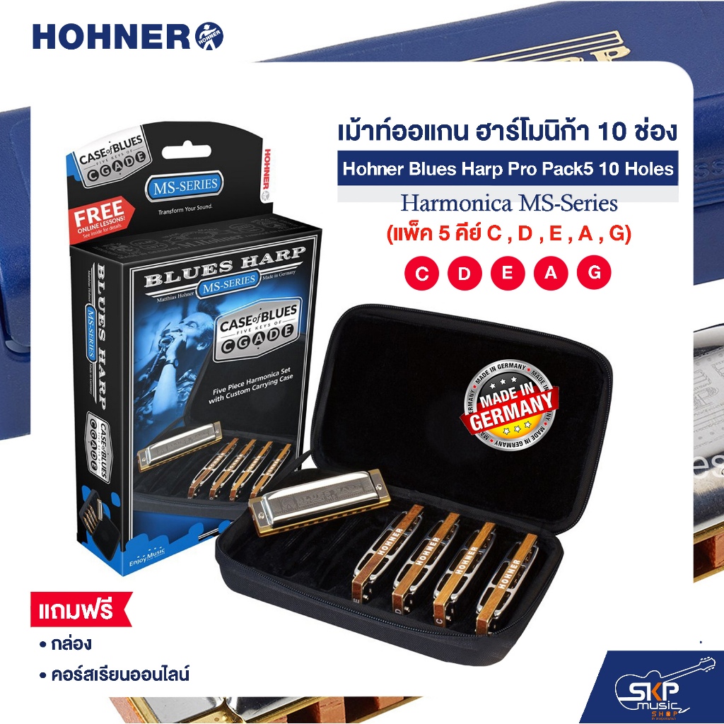 เม้าท์ออแกน ฮาร์โมนิก้า 10 ช่อง (แพ็ค 5 คีย์ C , D , E , A , G) Hohner Blues Harp Pro Pack5 10 Holes Harmonica MS-Series
