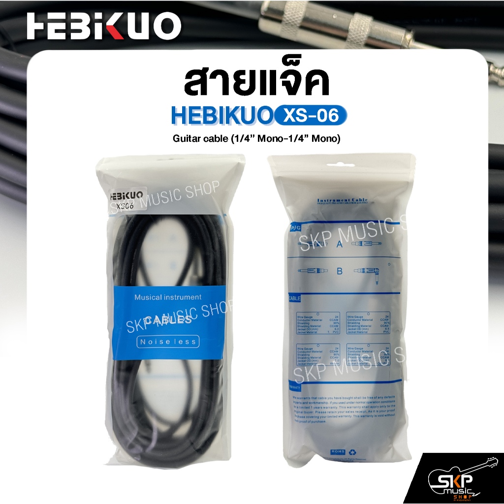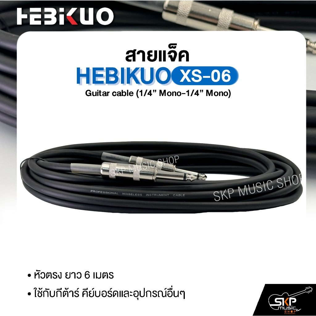 สายแจ็ค HEBIKUO XS-06 Guitar cable (1/4” Mono-1/4” Mono) หัวตรง ยาว 6 เมตร ใช้กับกีต้าร์ คีย์บอร์ดและอุปกรณ์อื่นๆ
