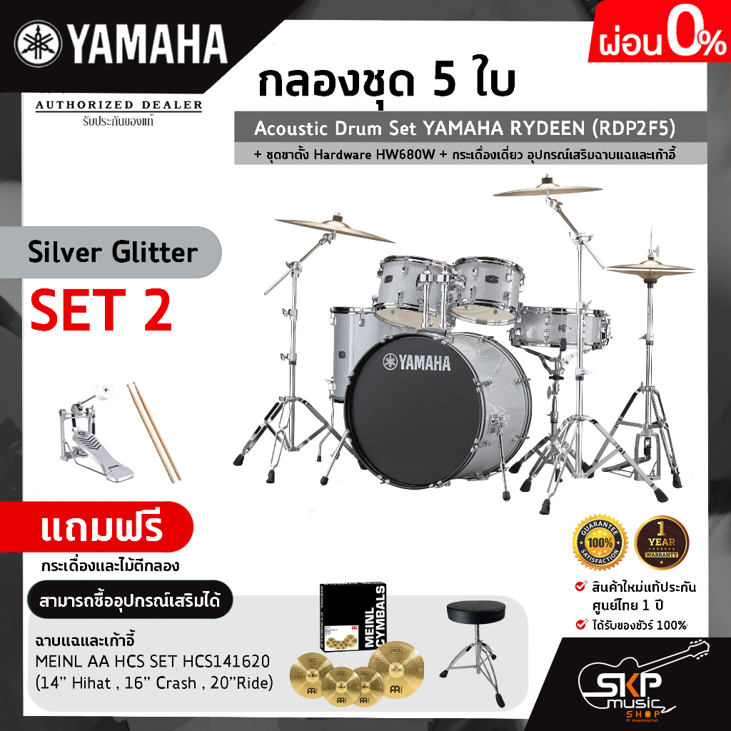 กลองชุด 5 ใบ Acoustic Drum Set YAMAHA RYDEEN + Hardware HW680W + กระเดื่องเดี่ยว อุปกรณ์เสริมฉาบแฉและเก้าอี้