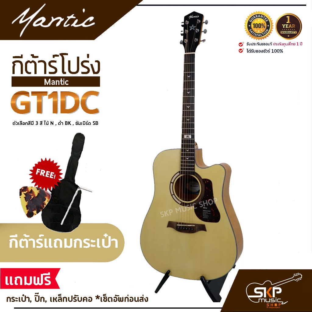 กีต้าร์โปร่ง MANTIC GT-1DC คอเว้า แถมกระเป๋า ปิ๊ก เหล็กปรับคอ เซ็ตอัพก่อนส่ง