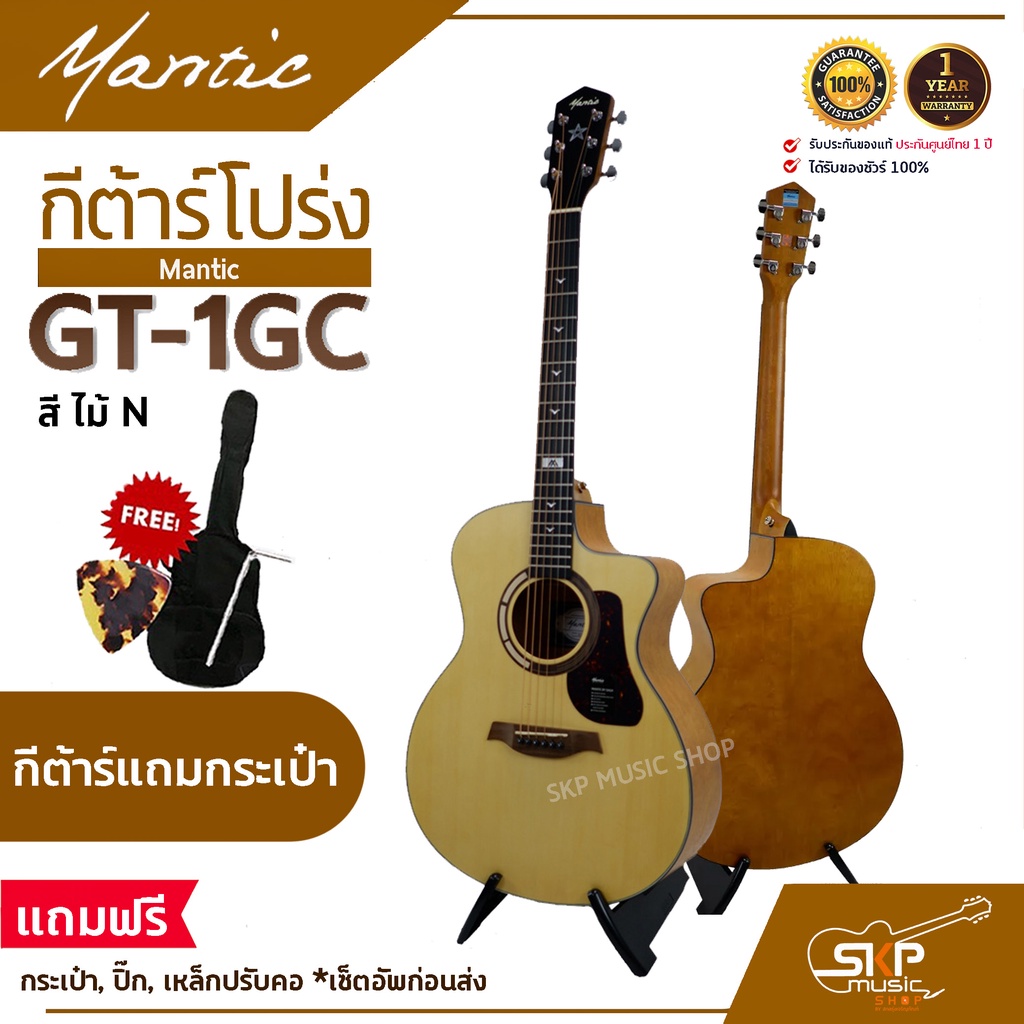 กีต้าร์โปร่ง MANTIC GT-1GC แถมกระเป๋า ปิ๊ก เหล็กปรับคอ เซ็ตอัพก่อนส่ง