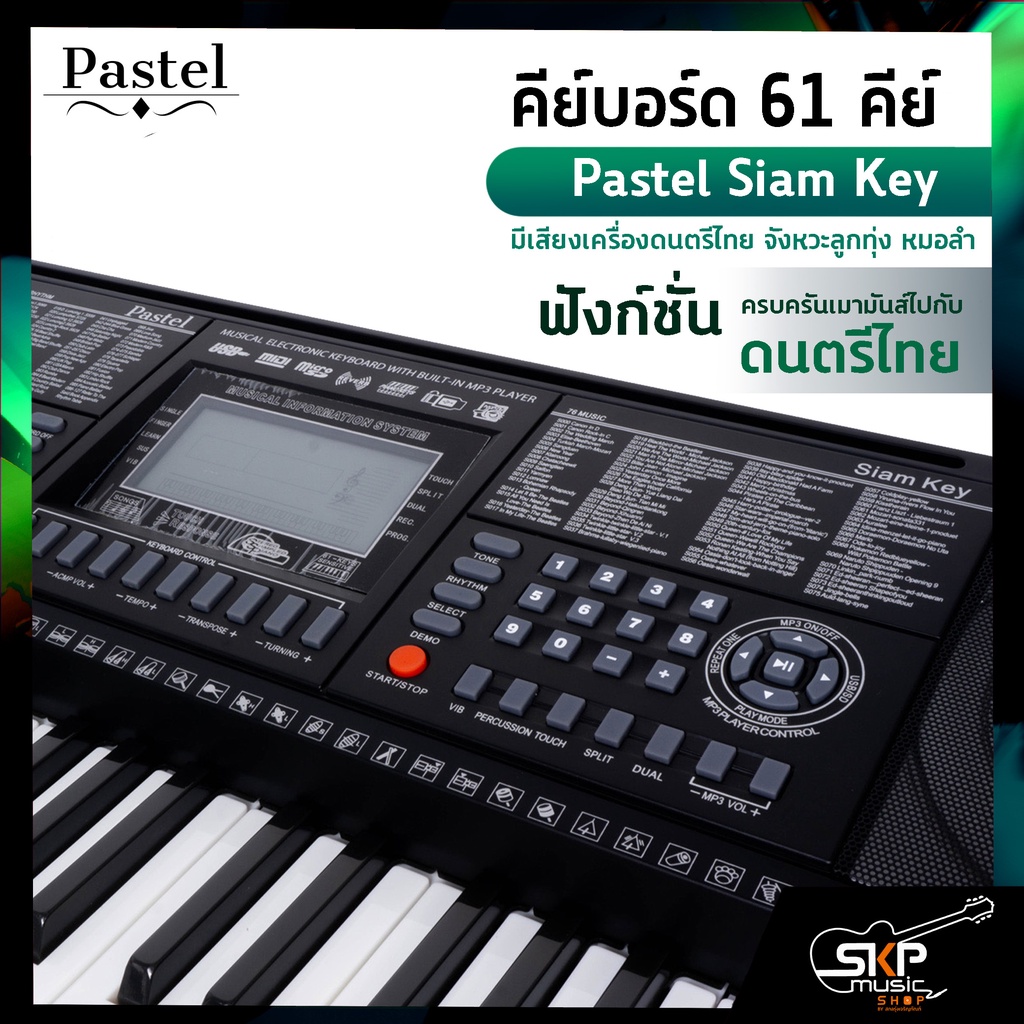 คีย์บอร์ด 61 คีย์ Pastel Siam Key มีเสียงเครื่องดนตรีไทย จังหวะลูกทุ่ง หมอลำ แถมขาตั้งตัว X , อะแดปเตอร์ , USB , คู่มือ