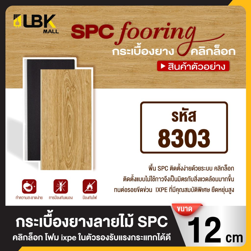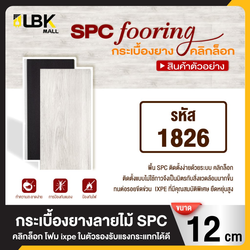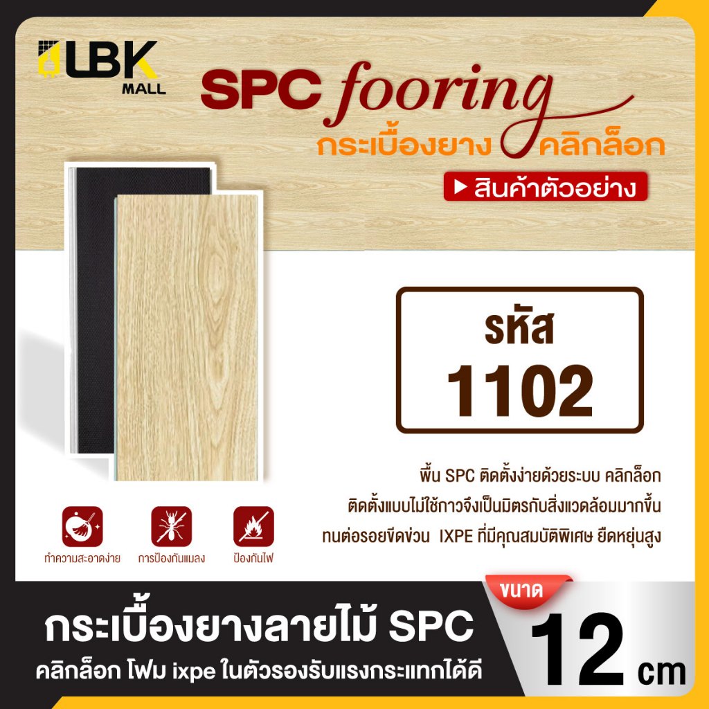 ตัวอย่างสินค้า 1แผ่น กระเบื้องยาง SPC แบบคลิกล็อค ขนาดยาว 12cm.หนา 5มม. พร้อมโฟม ixpe ในตัว แผ่นปูพื้น