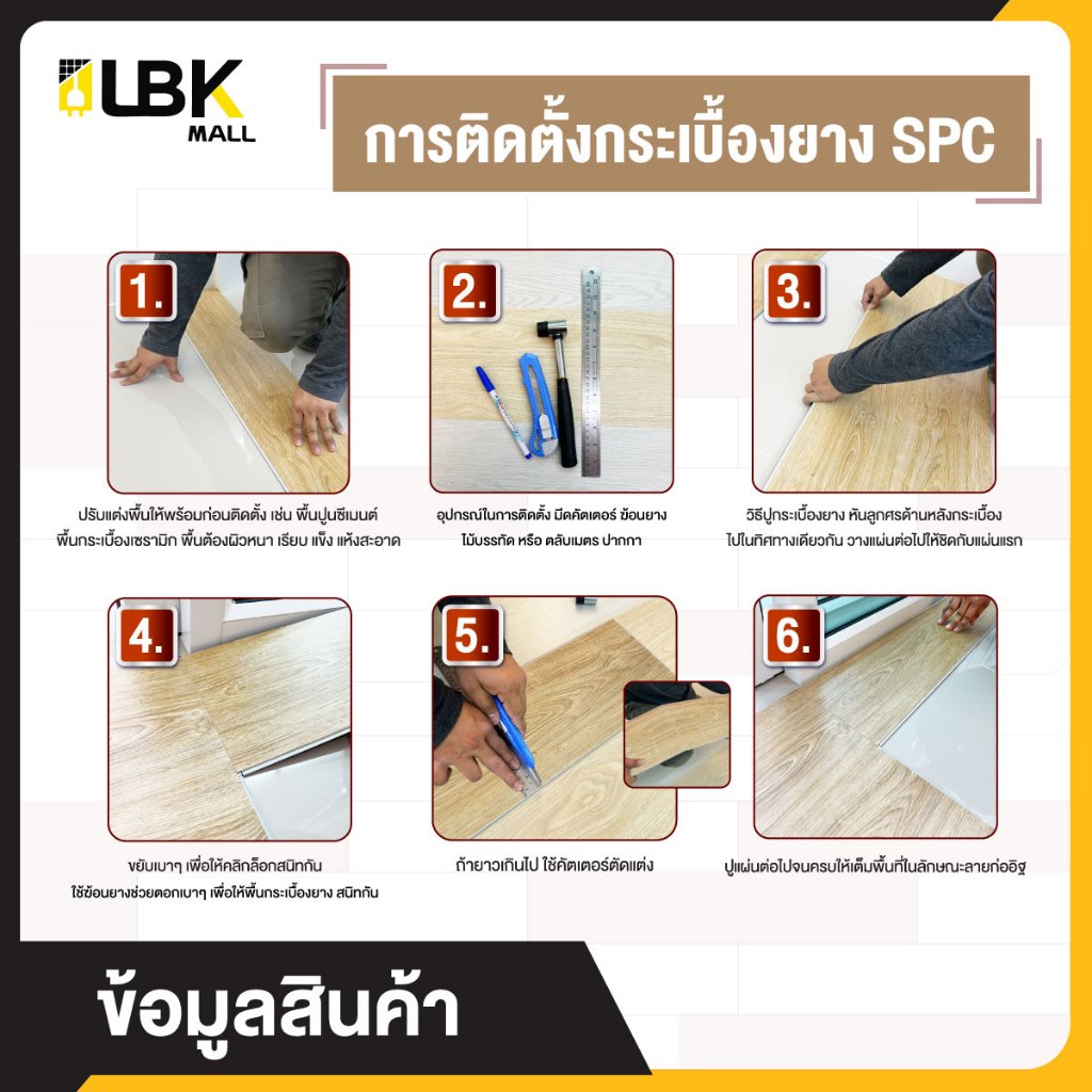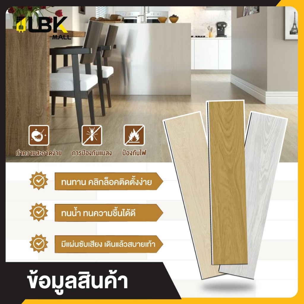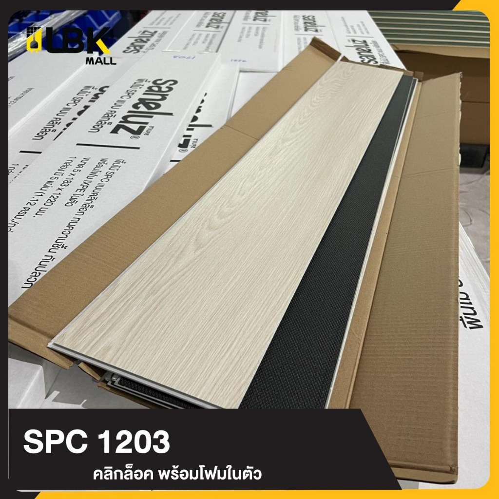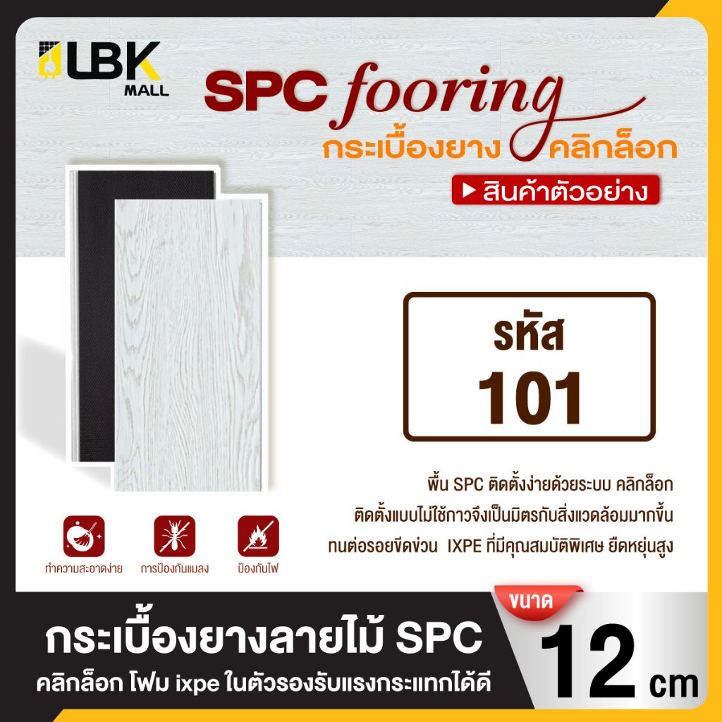 ตัวอย่างสินค้า 1แผ่น กระเบื้องยาง SPC แบบคลิกล็อค ขนาดยาว 12cm.หนา 5มม. พร้อมโฟม ixpe ในตัว แผ่นปูพื้น