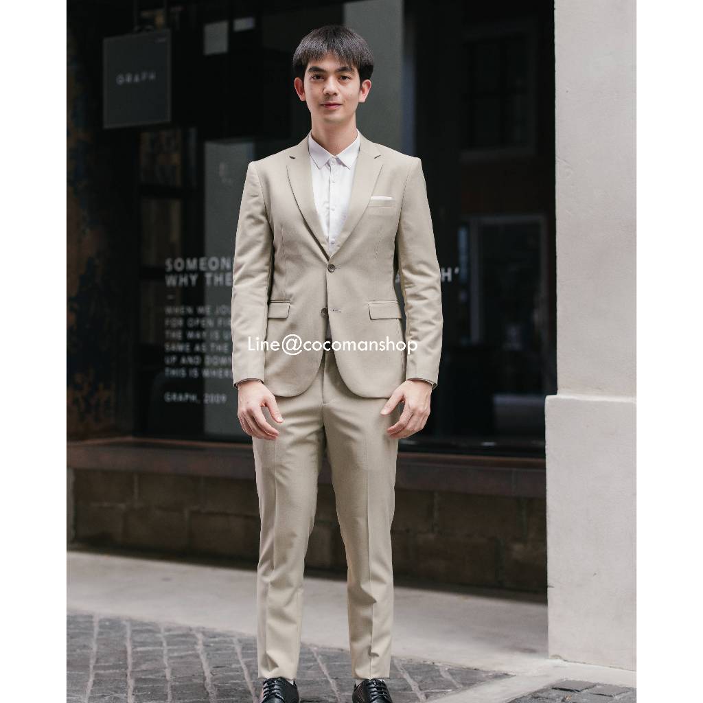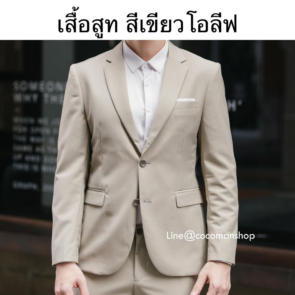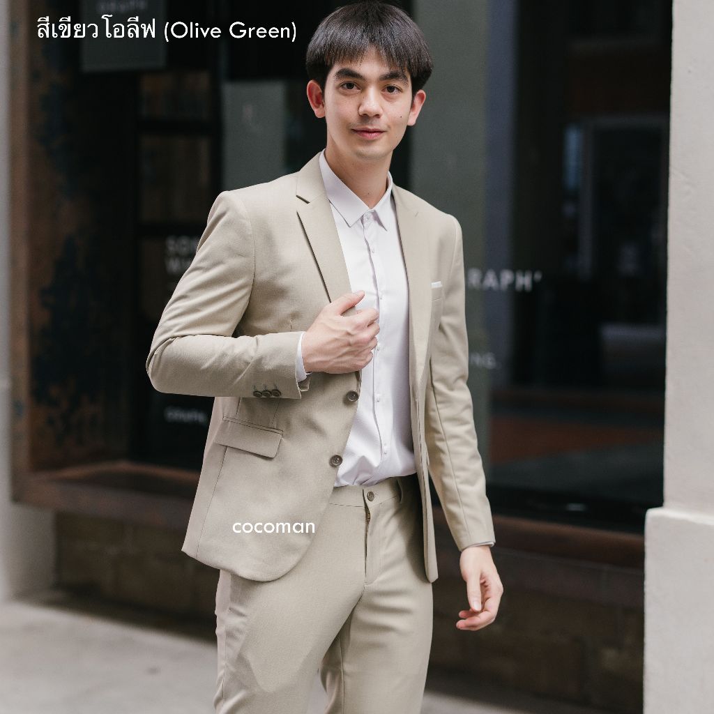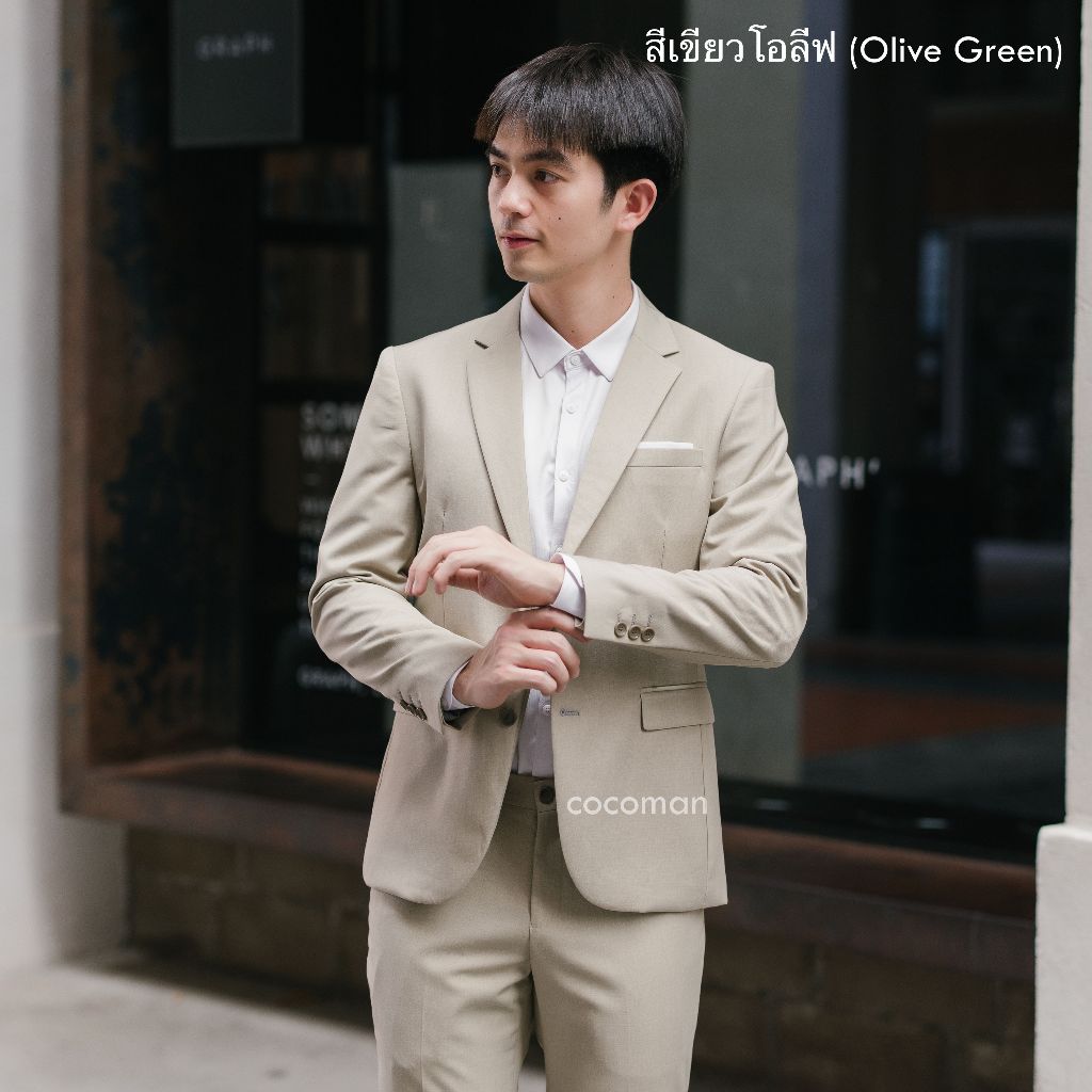 COCO-MAN เสื้อสูทกระดุม 2 เม็ด สีเขียวโอลีฟ(Olive Green) ชุดสูทผู้ชาย มีกางเกงเข้าชุด ขายแยก เสื้อ กางเกง