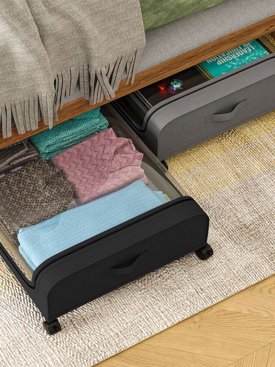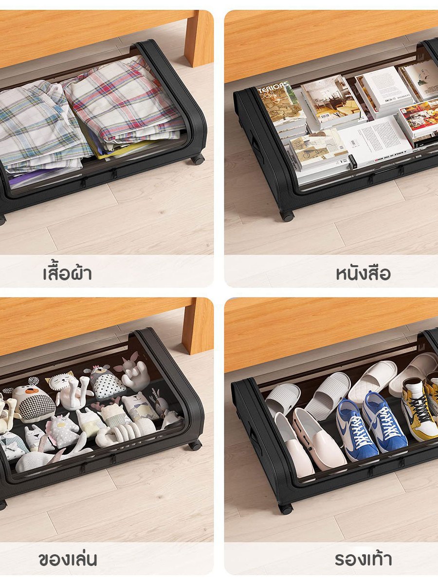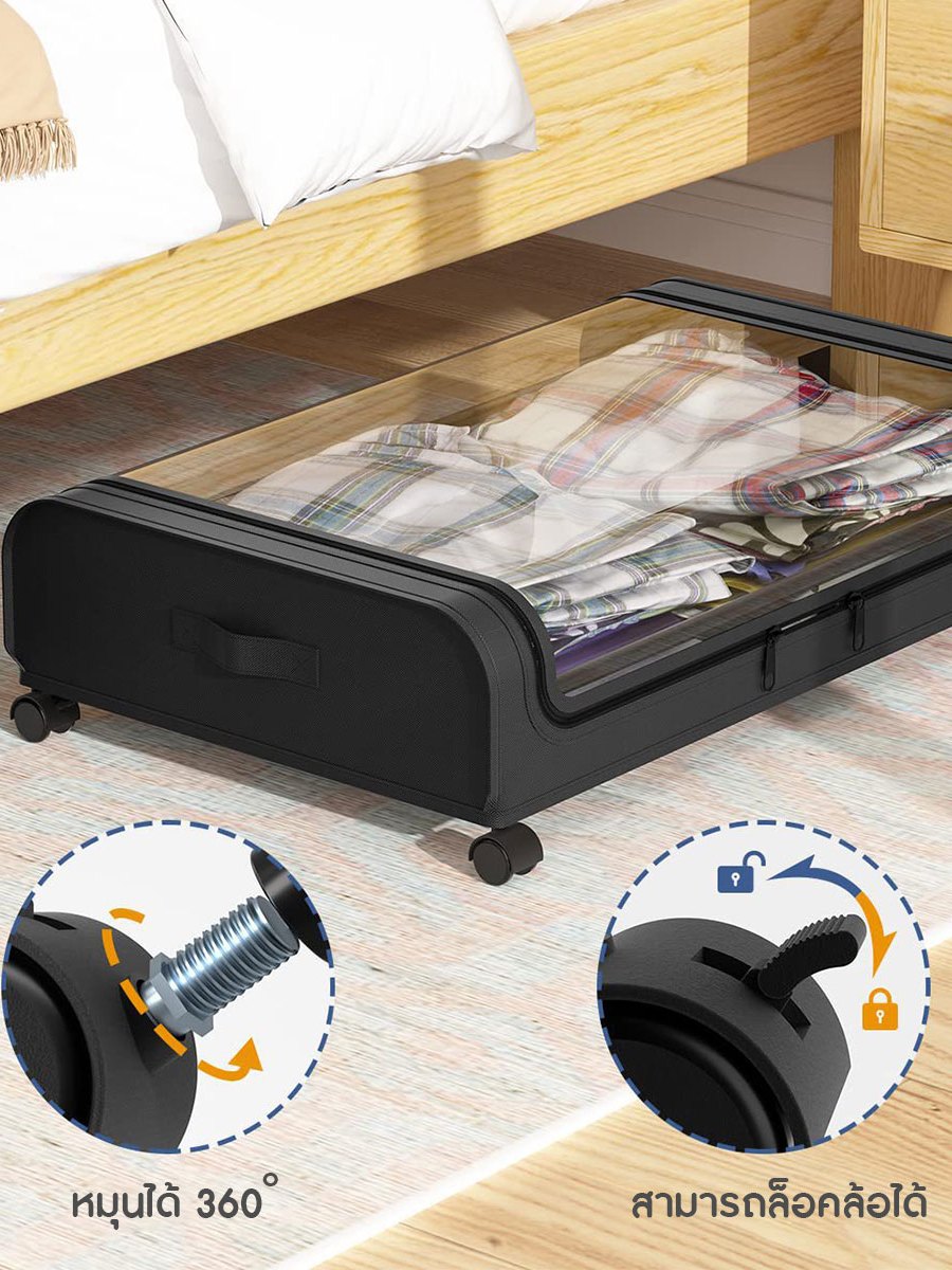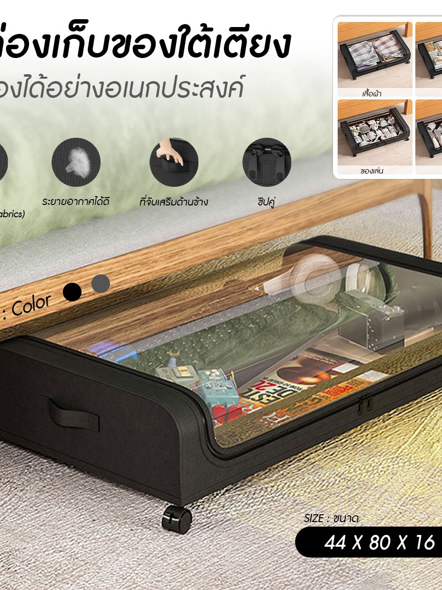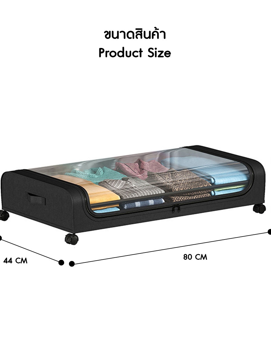 กล่องผ้าเก็บเสื้อผ้าใต้เตียง กล่องผ้าเก็บของ มีล้อ ระบายอากาศได้ดี ขนาด 44x80x16 cm