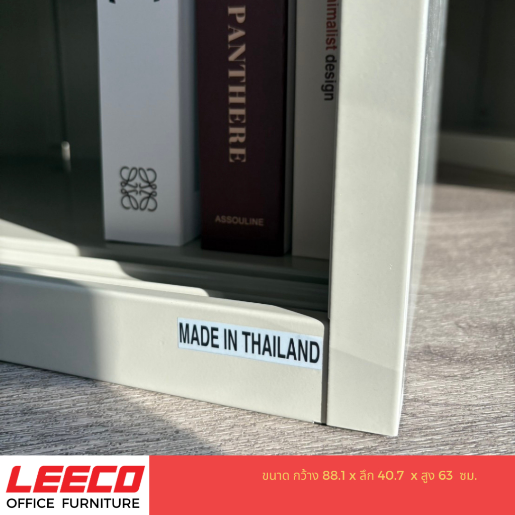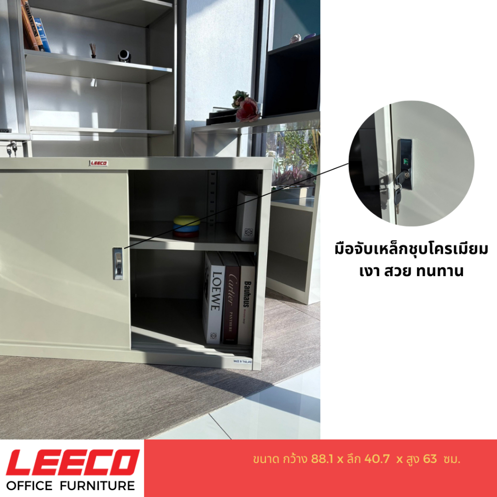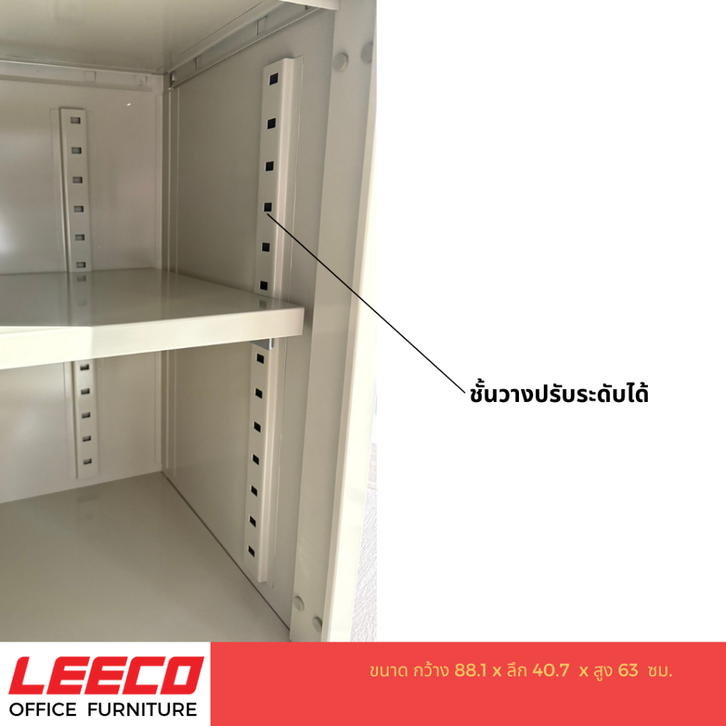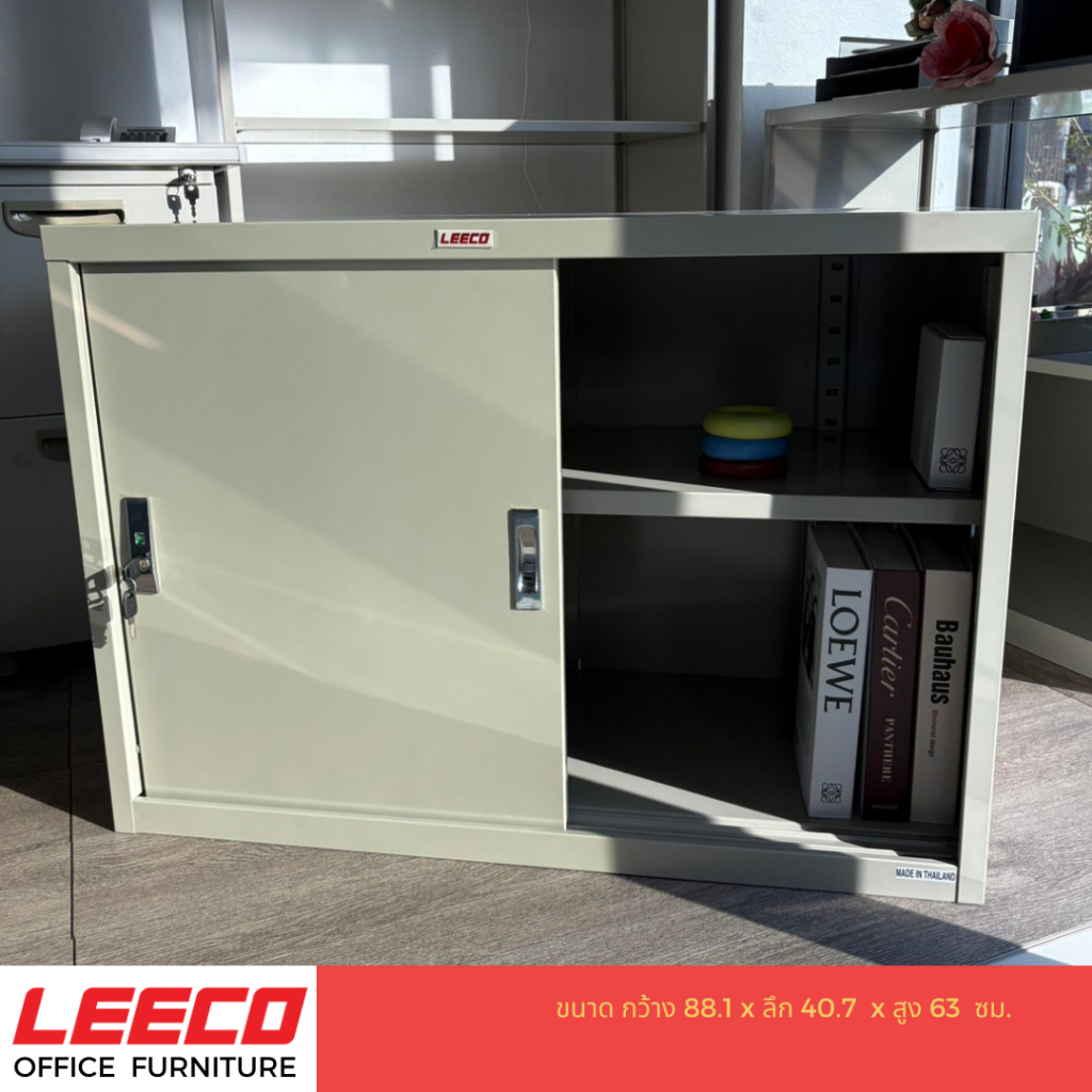 LEECO ลีโก้ ตู้บานเลื่อนทึบ 3 ฟุต ตู้อเนกประสงค์เก็บของใช้ในบ้านและสำนักงาน ชั้นวางปรับระดับได้ รุ่น SLS-0203