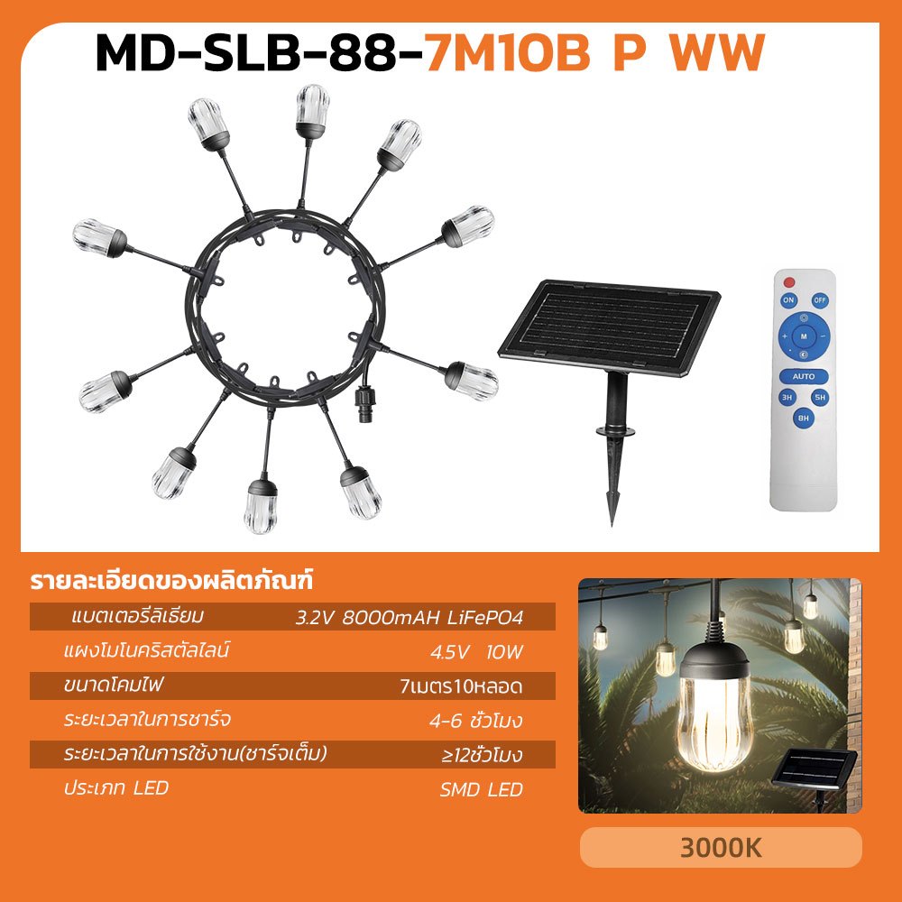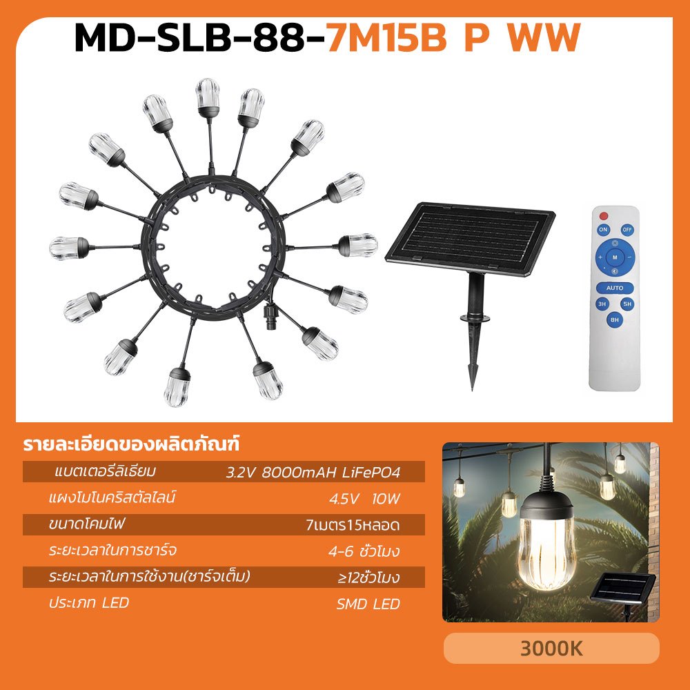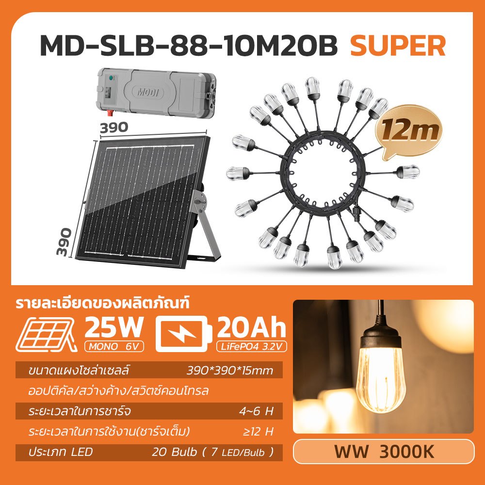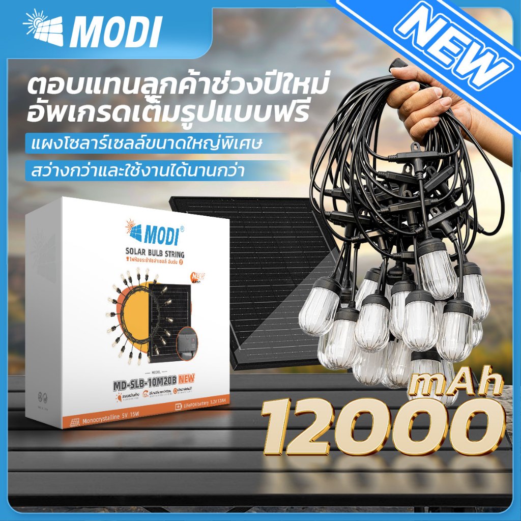 MODI ไฟห้อยระย้าโซล่าเซลล์ ยาว7M 10M 15M แสงเหลือง ไฟตกแต่งสวน ปีใหม่ คริสมาส ปาร์ตี้ solar light