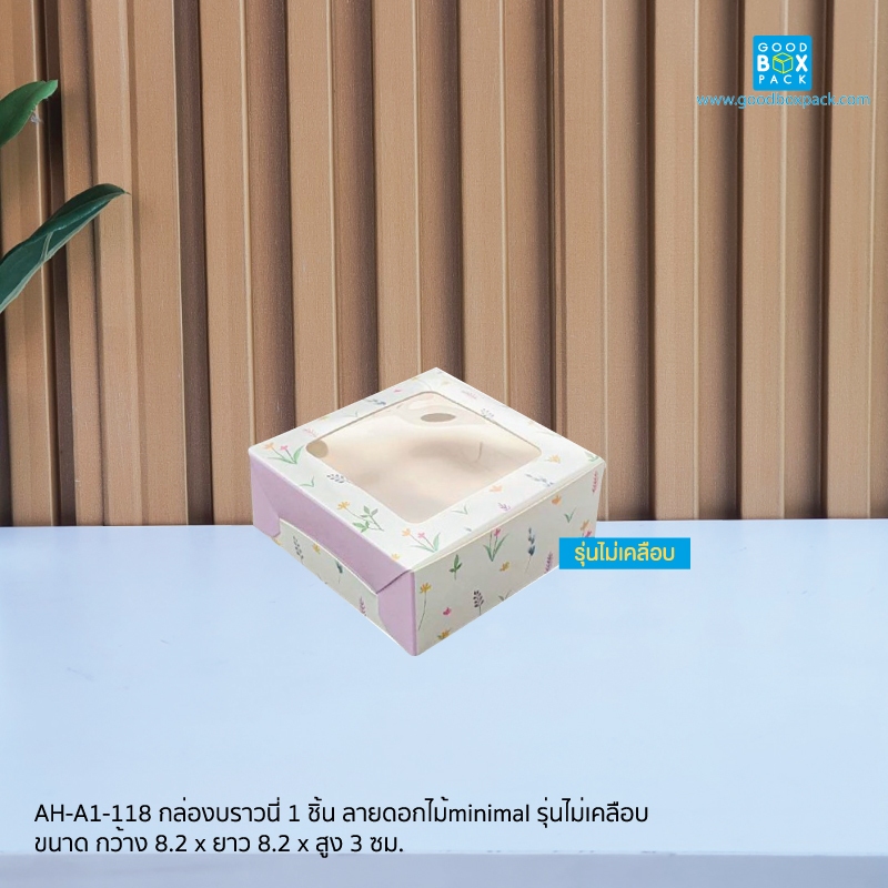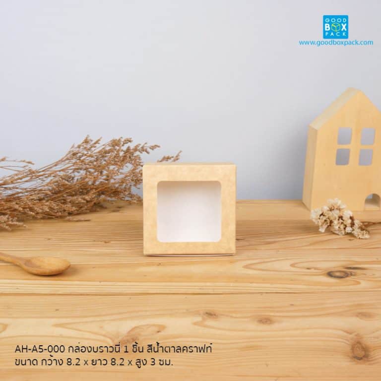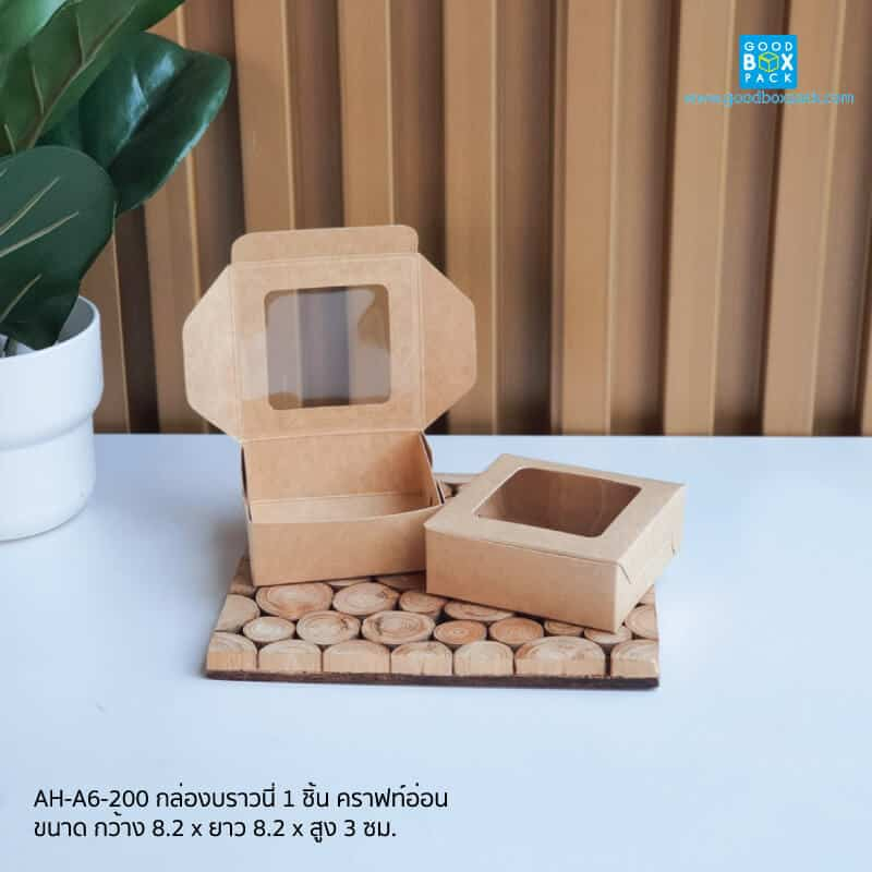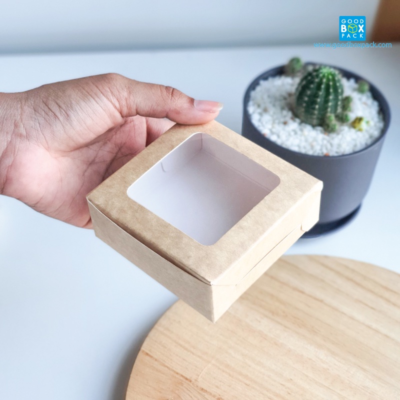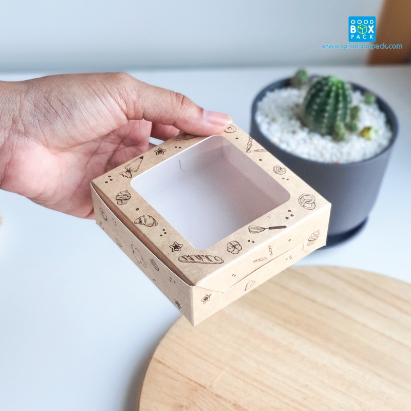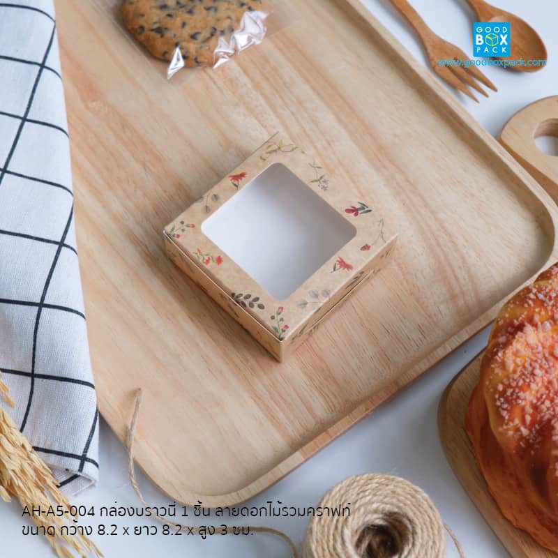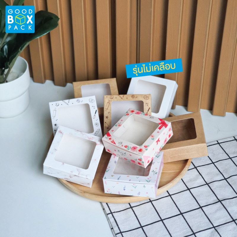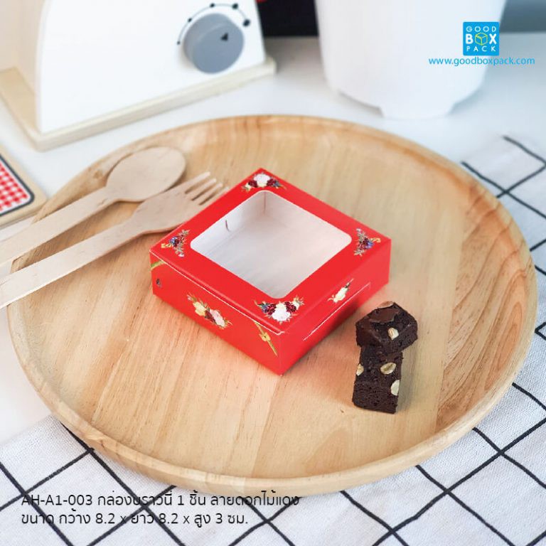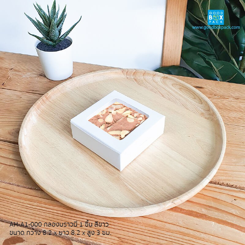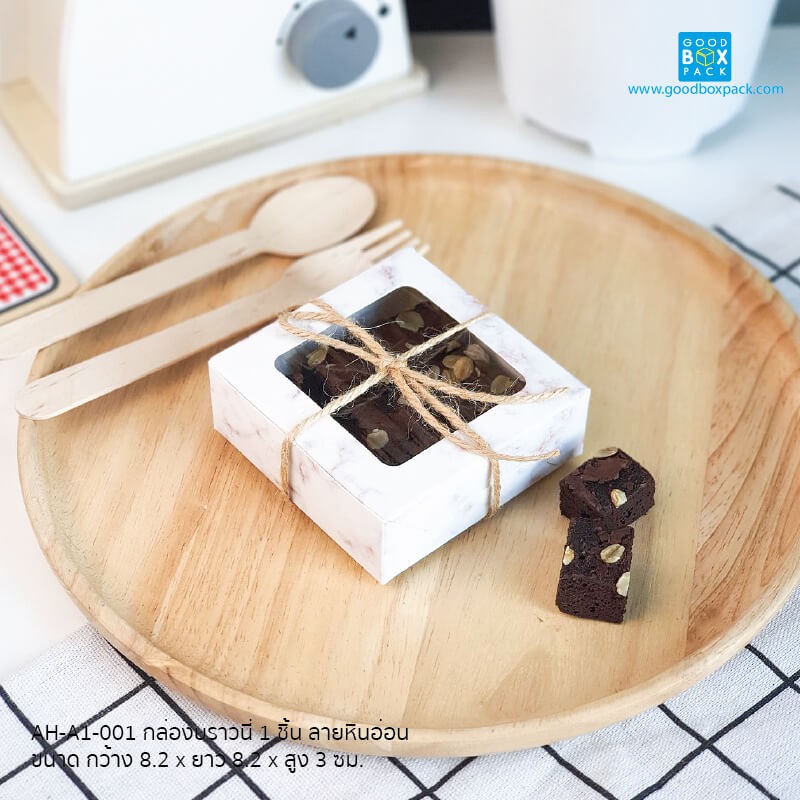 Goodboxpack (แพ็คละ50ใบ) กล่องบราวนี่ 1 ชิ้น มีแบบเคลือบเเละไม่เคลือบ เป็นก ระดาษฟู้ดเกรด ขนาด8.2x8.2x3ซม