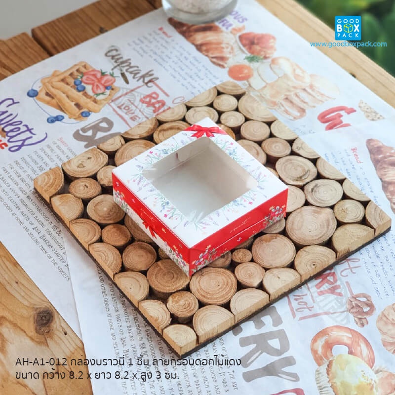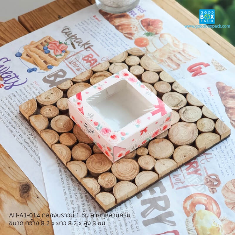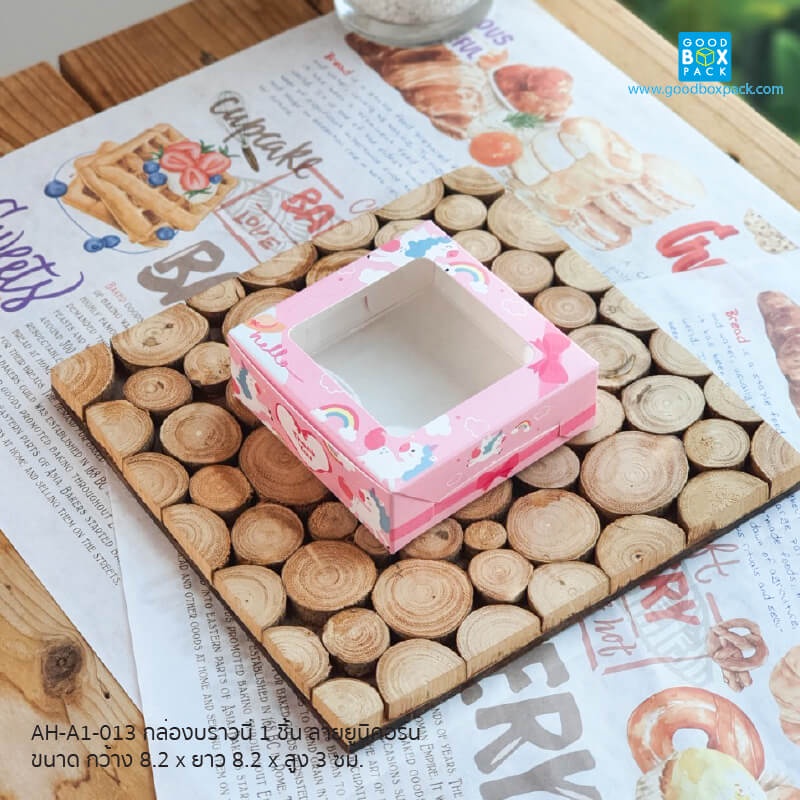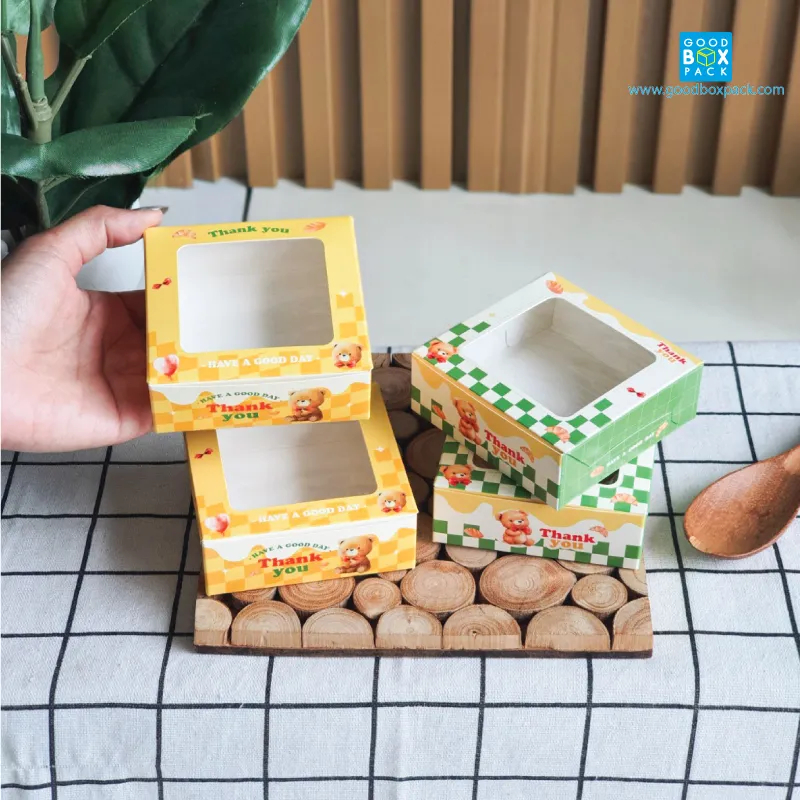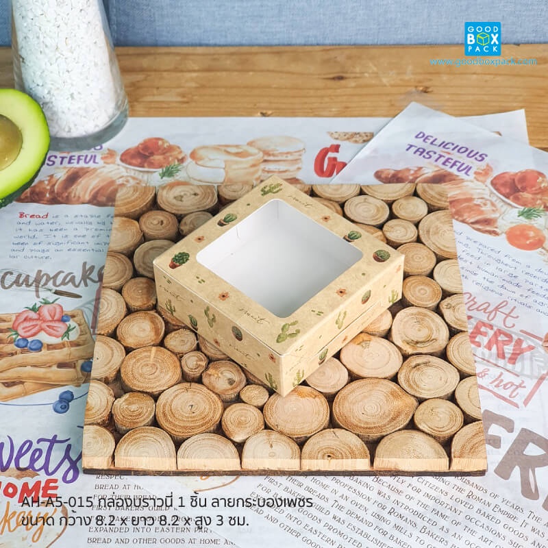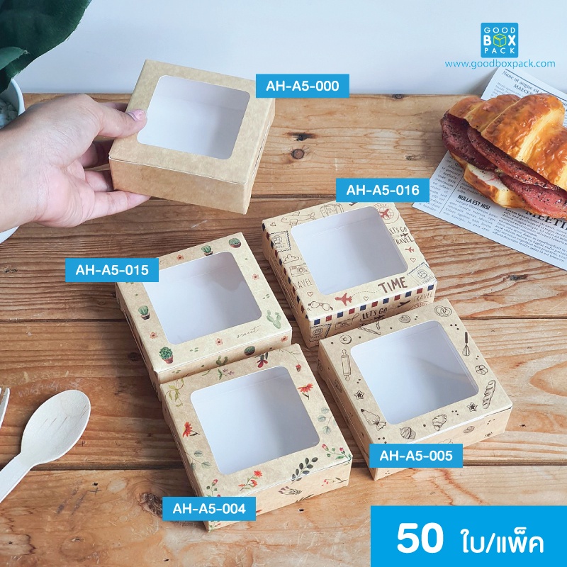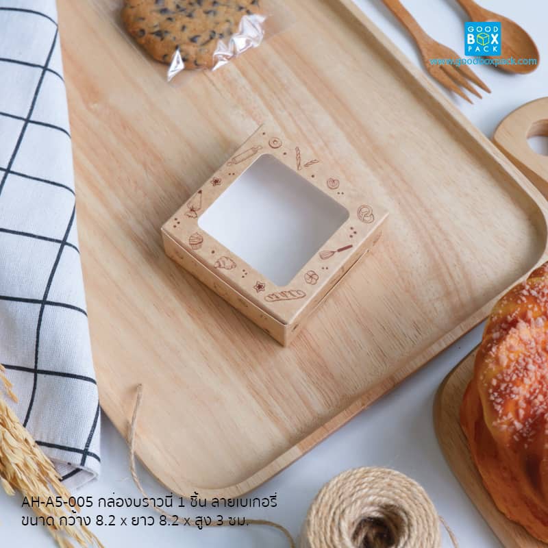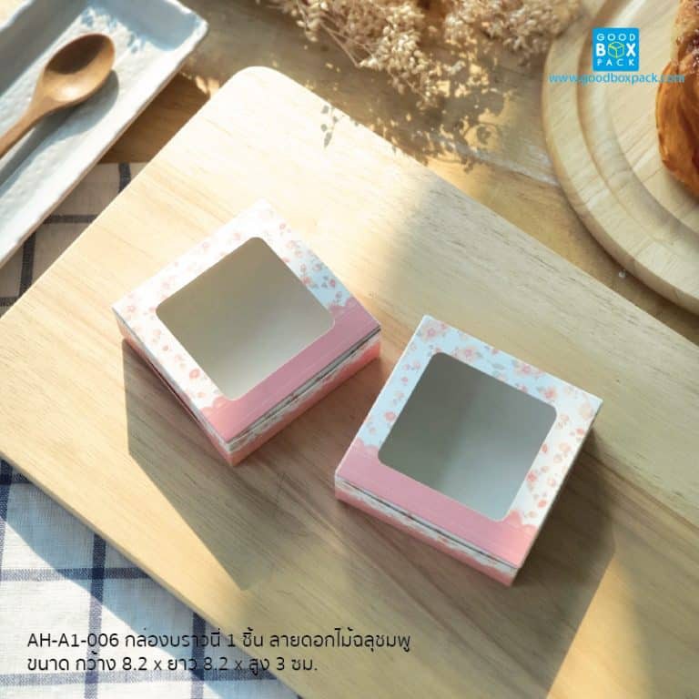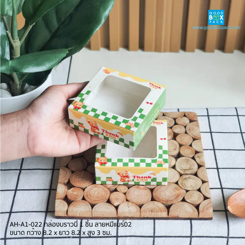 Goodboxpack (แพ็คละ50ใบ) กล่องบราวนี่ 1 ชิ้น มีแบบเคลือบเเละไม่เคลือบ เป็นก ระดาษฟู้ดเกรด ขนาด8.2x8.2x3ซม