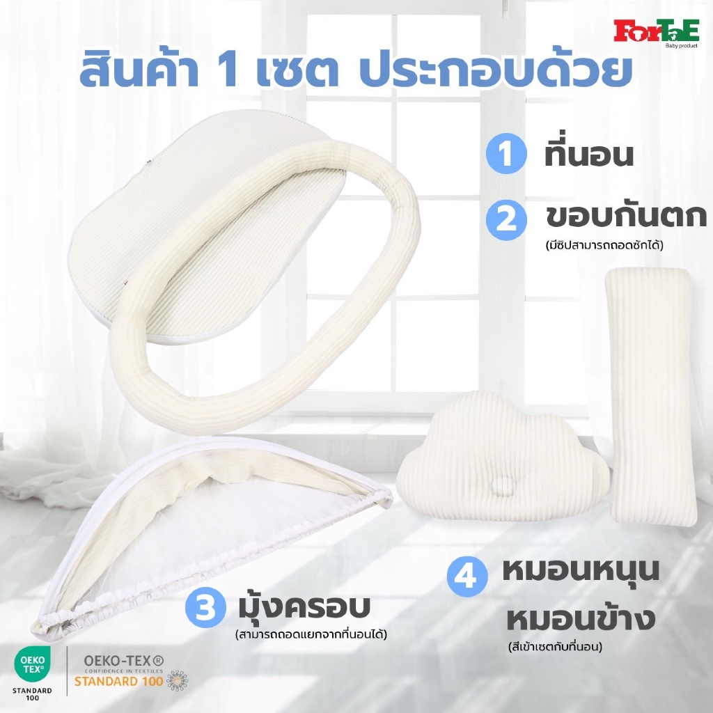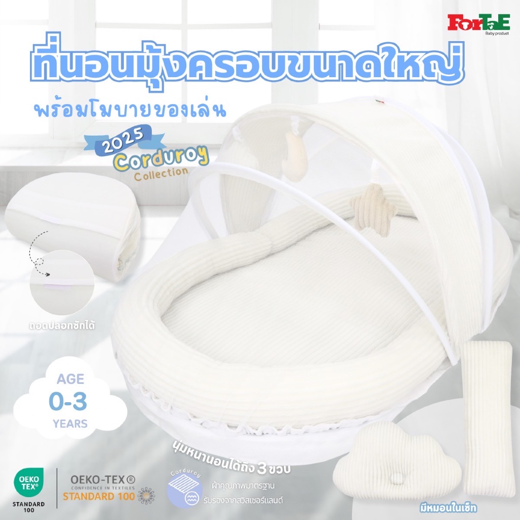 Fortae Baby ที่นอนเด็กมุ้งครอบ ที่นอนมุ้งพร้อมโมบายของเล่น ผ้าCorduroy ถอดซักได้ ฟอร์เต้ รุ่น CC032