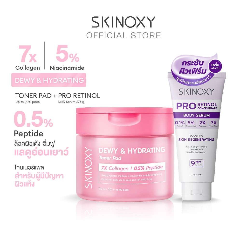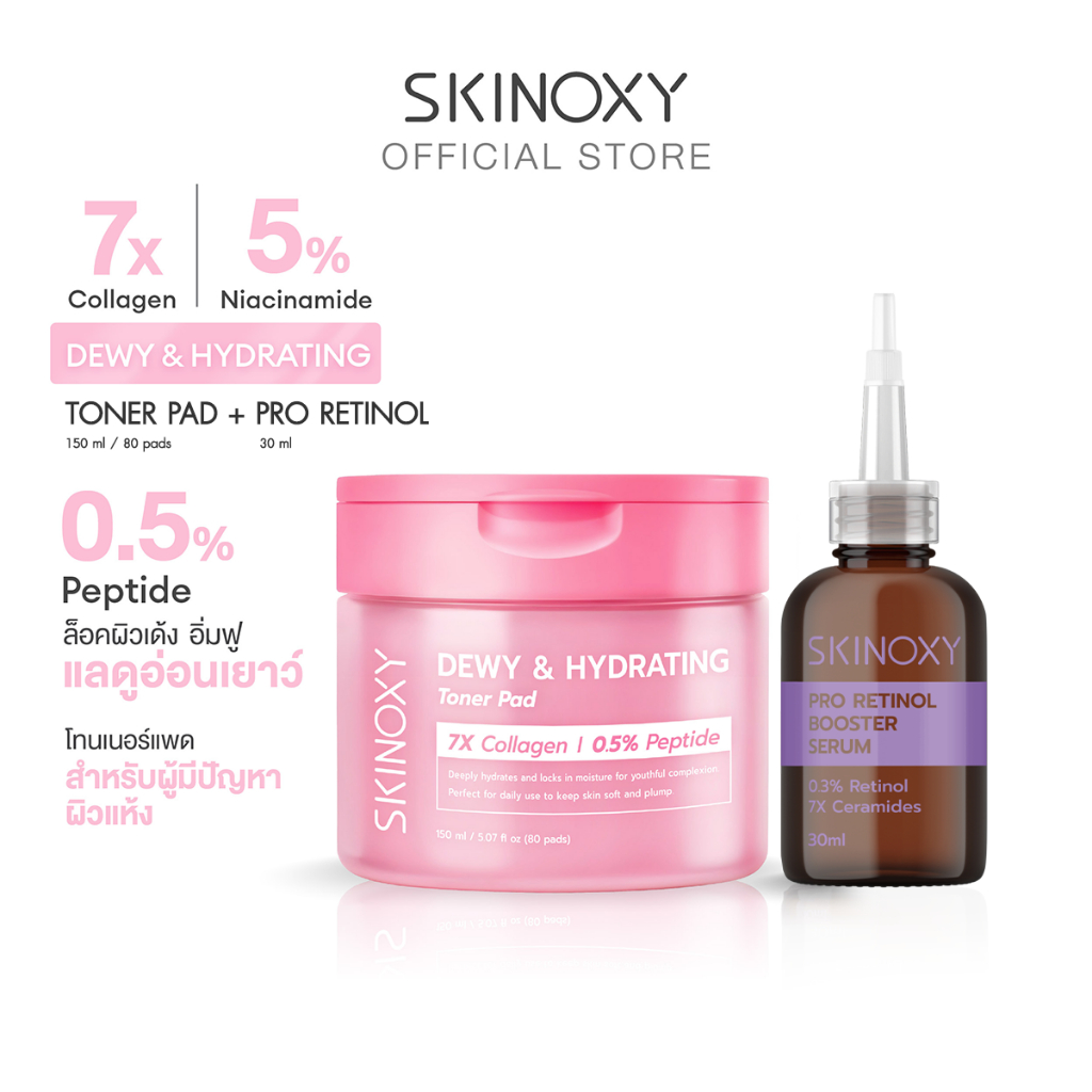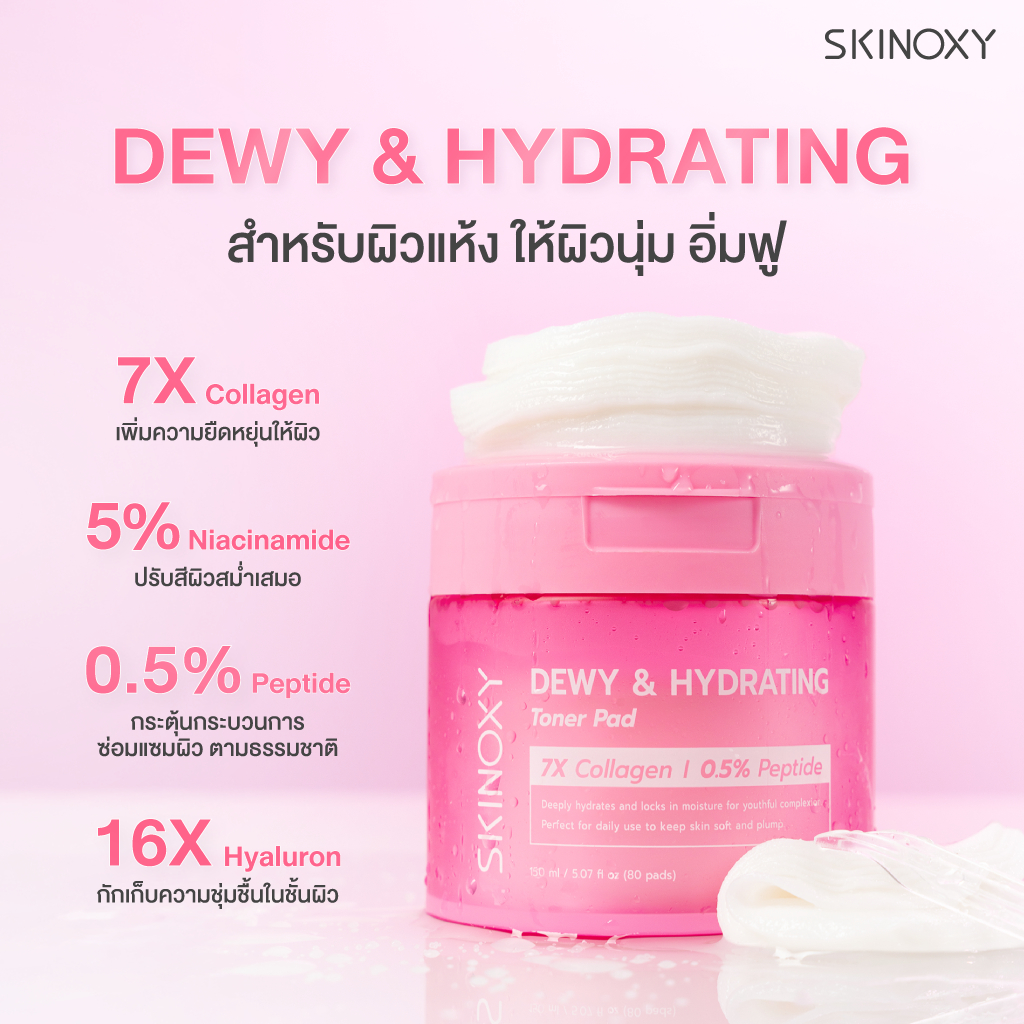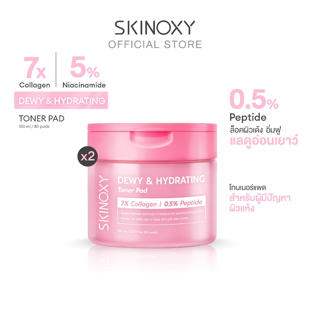 [Best Seller] SKINOXY TONER PAD สกินอ๊อกซี่ โทนเนอร์แพด ขนาด 80 แผ่น สูตร ผิวขาวใส / สูตร ผิวฉ่ำน้้ำ