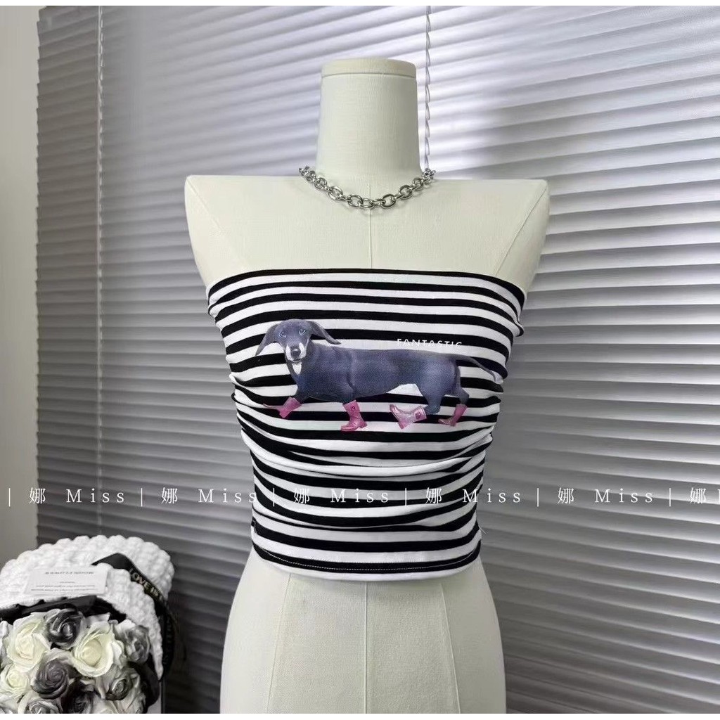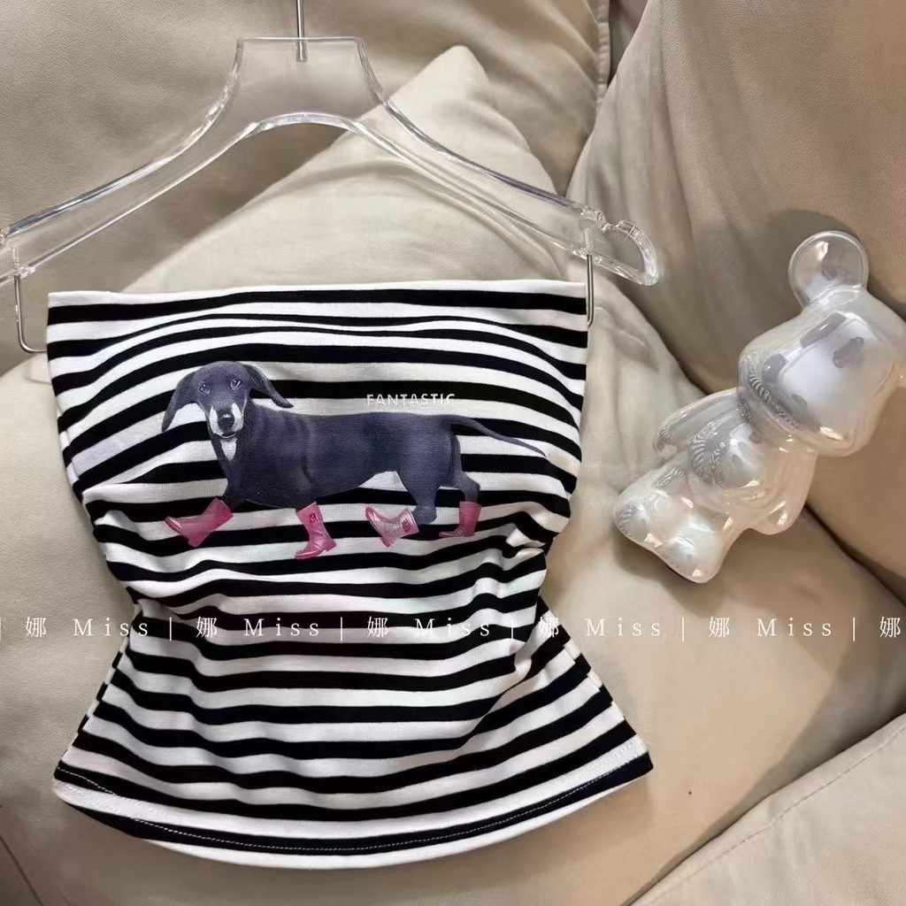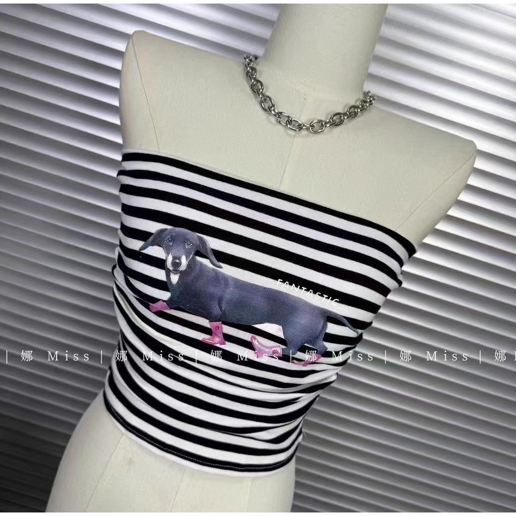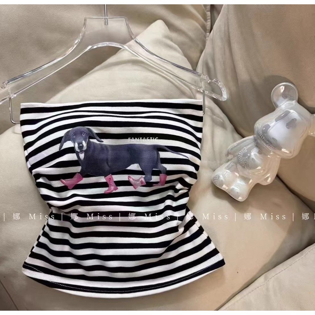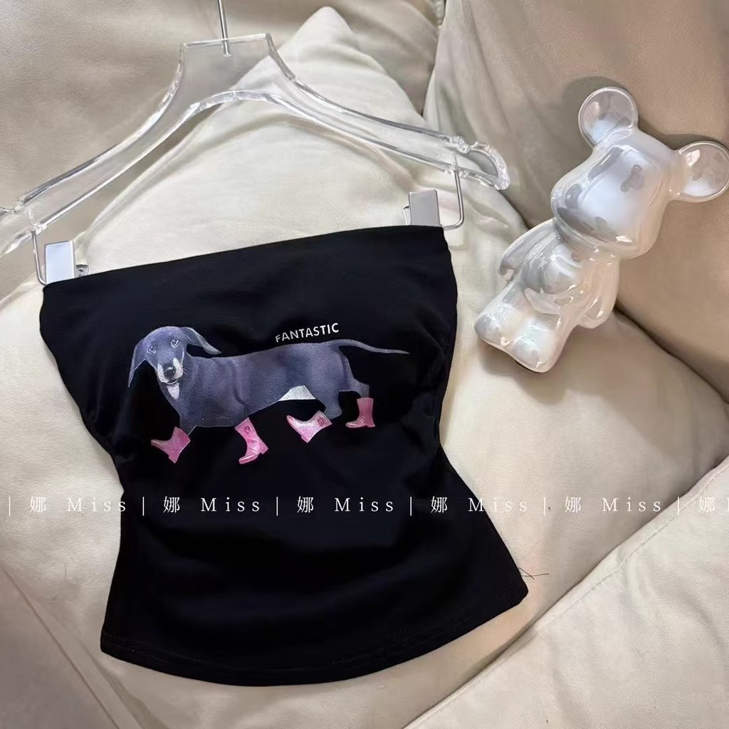 LiNa เบาะ Retro Casual Puppy ลายอเมริกันสำหรับผู้หญิง ทรงกระชับ สไตล์สลิมฟิต เหมาะกับฤดูใบไม้ผลิและฤดูร้อน