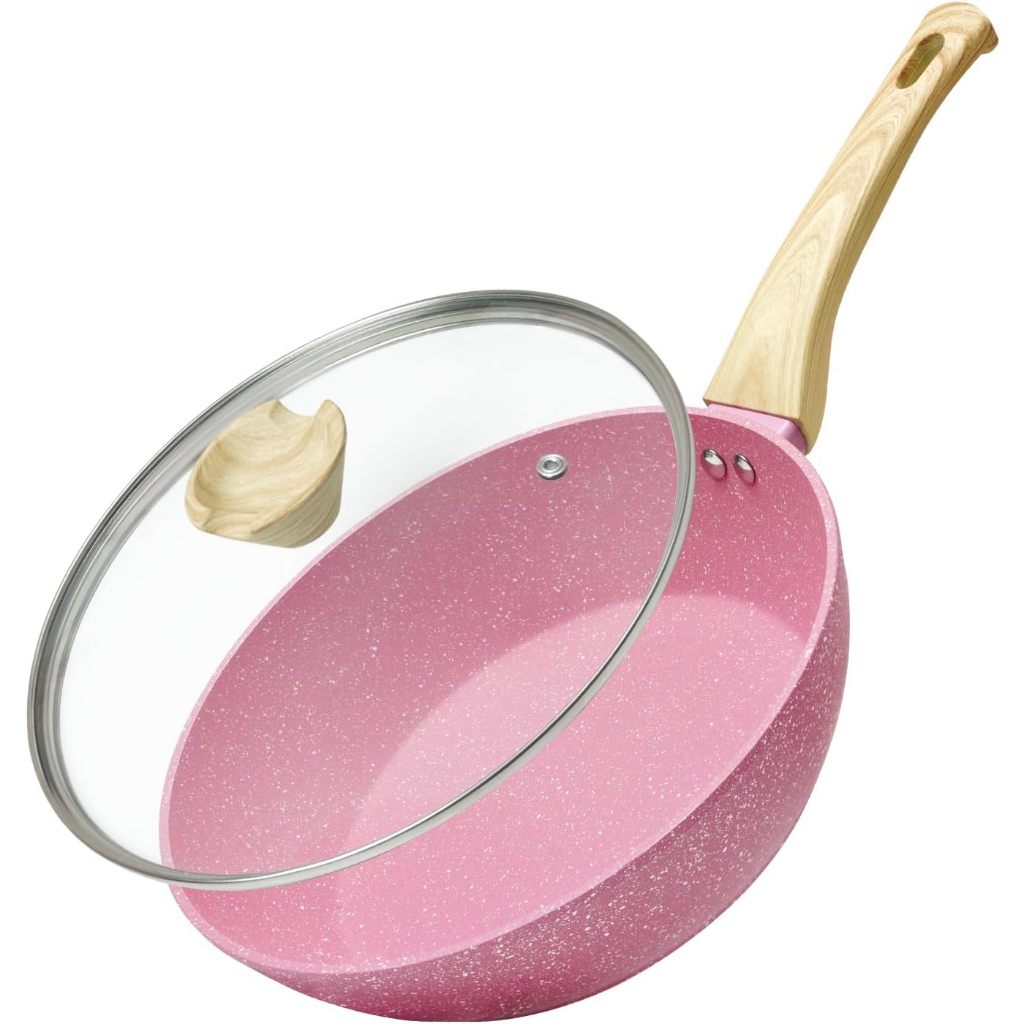Innerwell กระทะนอนสติ๊กลึก 10 นิ้วเคลือบเซรามิกเพื่อสุขภาพกระทะไม่ติดกระทะผัดพร้อมฝาปิดเหนี่ยวนําเข้ากันได้, PFOA & PTFE ฟรี