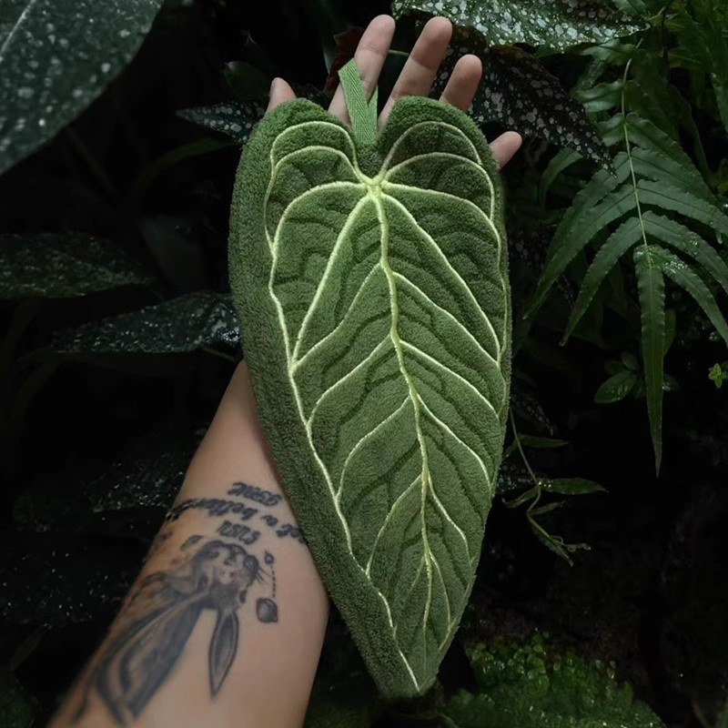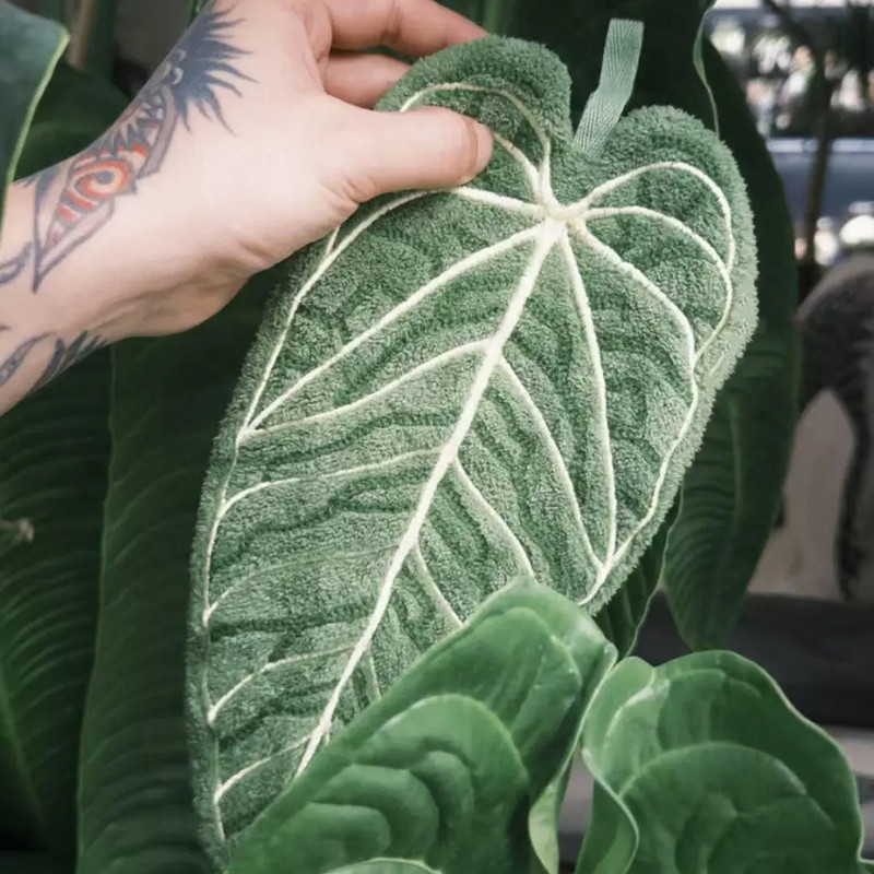 ผ้าเช็ดมือดีไซน์ใบเขตร้อนผ้าเช็ดมือขนแกะปะการังนุ่ม