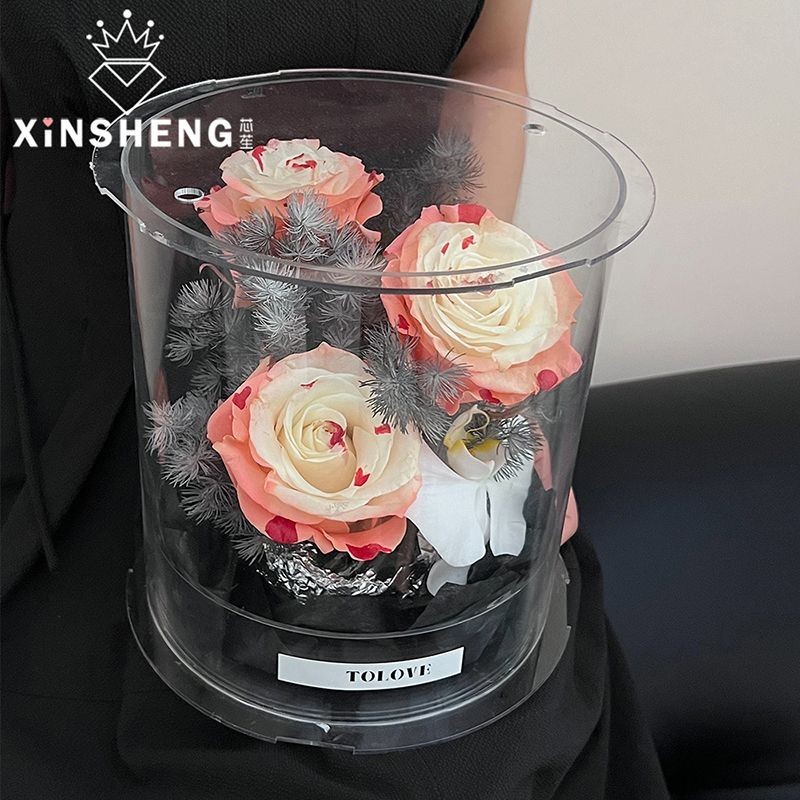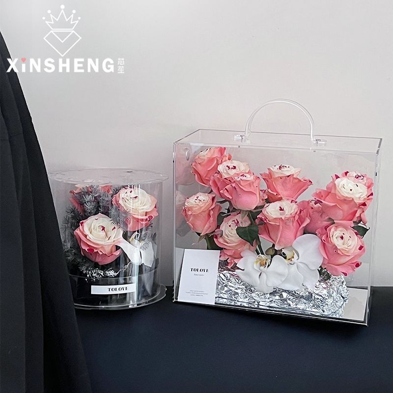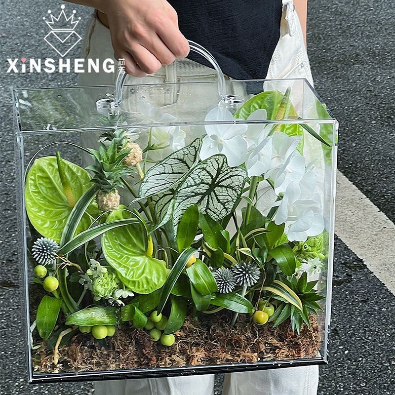 กล่องอะคริลิคใส ลายดอกไม้ แบบพกพา กันน้ํา แฮนด์เมด หรูหรา สําหรับใส่ช่อดอกไม้ diy