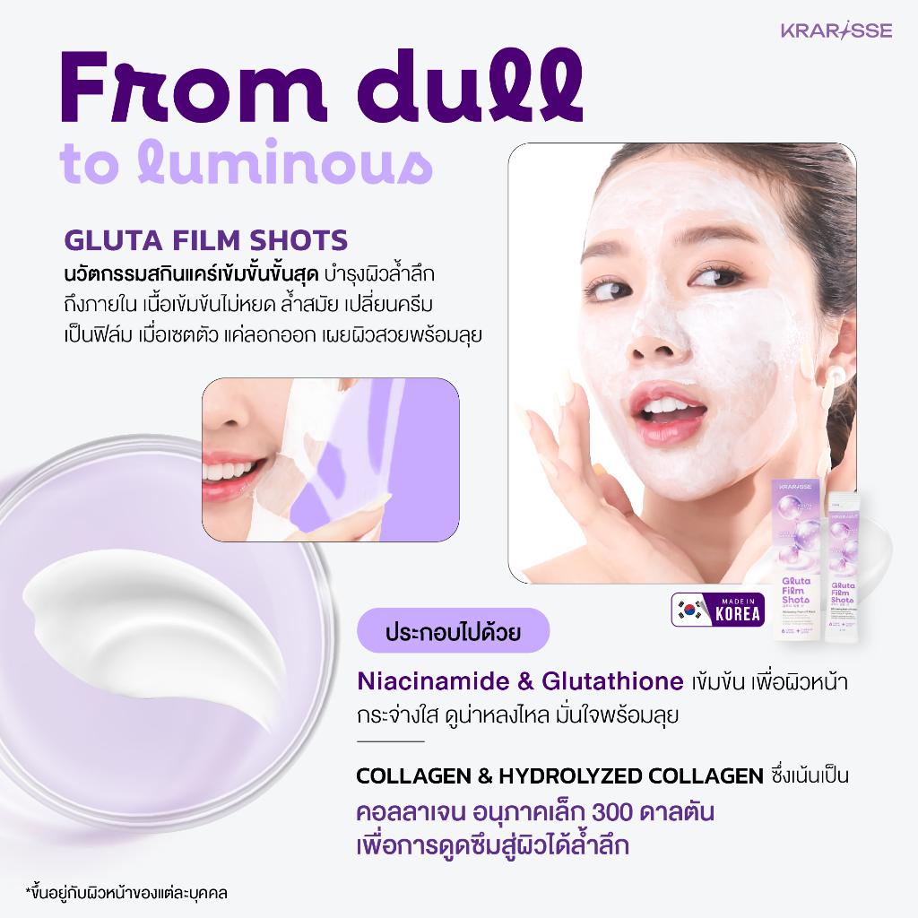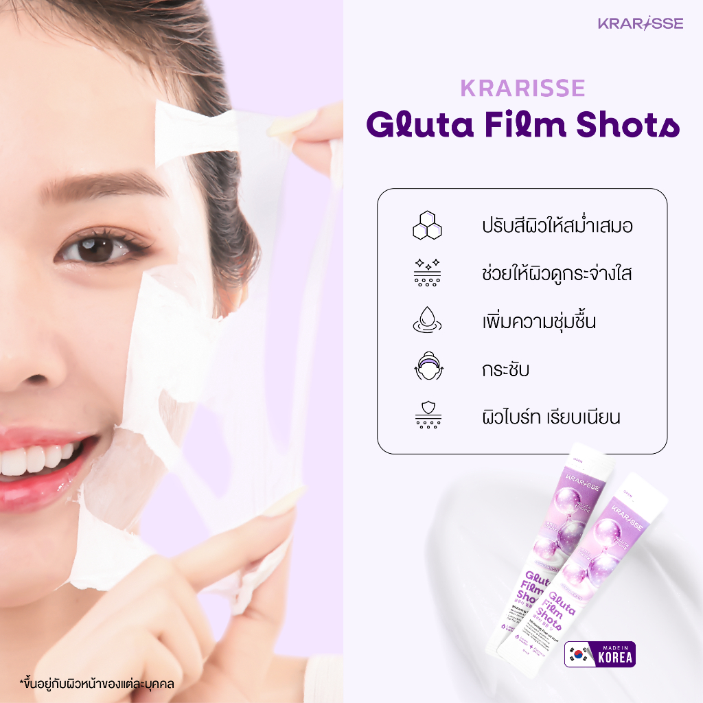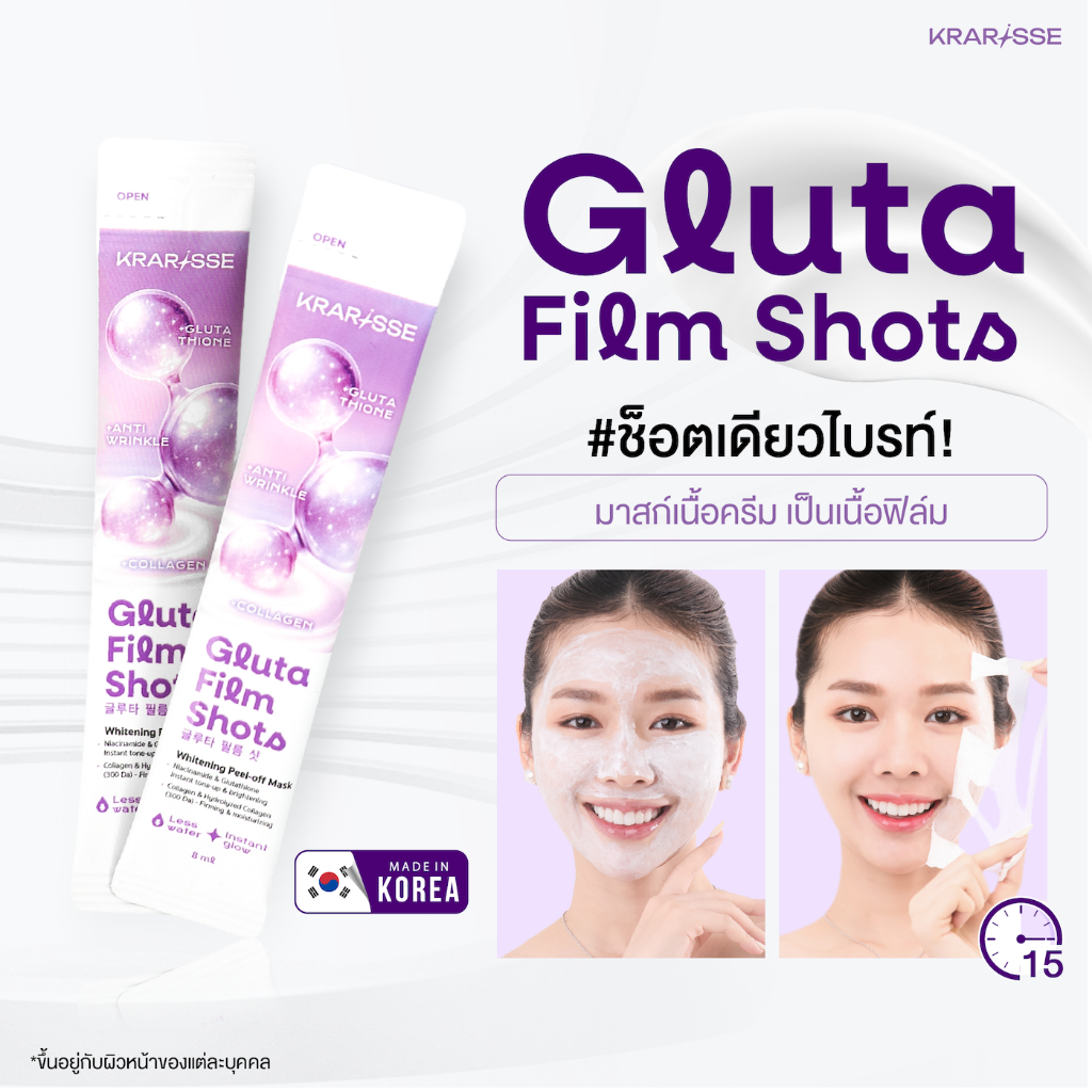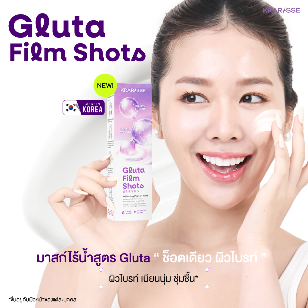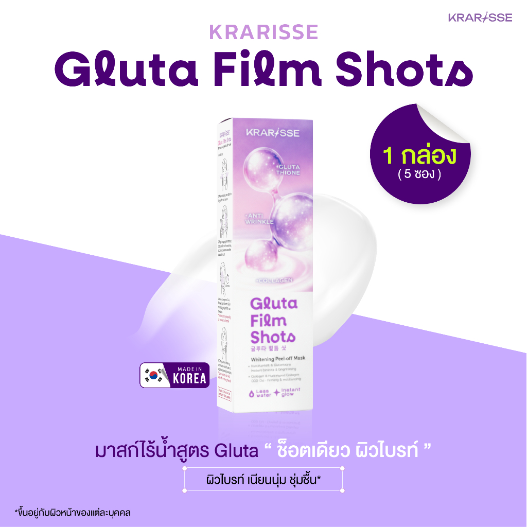 Gluta Film Shots มาส์กไร้น้ำสูตร Gluta 1 กล่อง 5 ซอง เนื้อครีมเปลี่ยนเป็นฟิล์ม ผิวกระจ่างใสพร้อมเติมความชุ่มชื้น