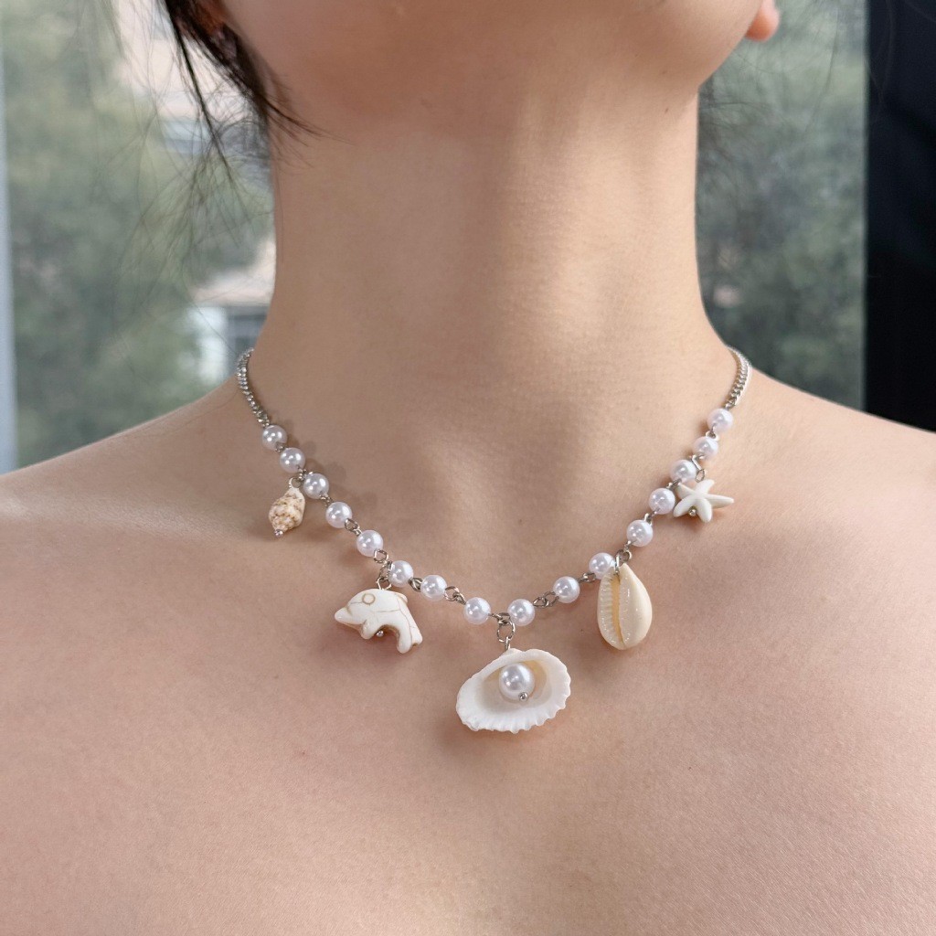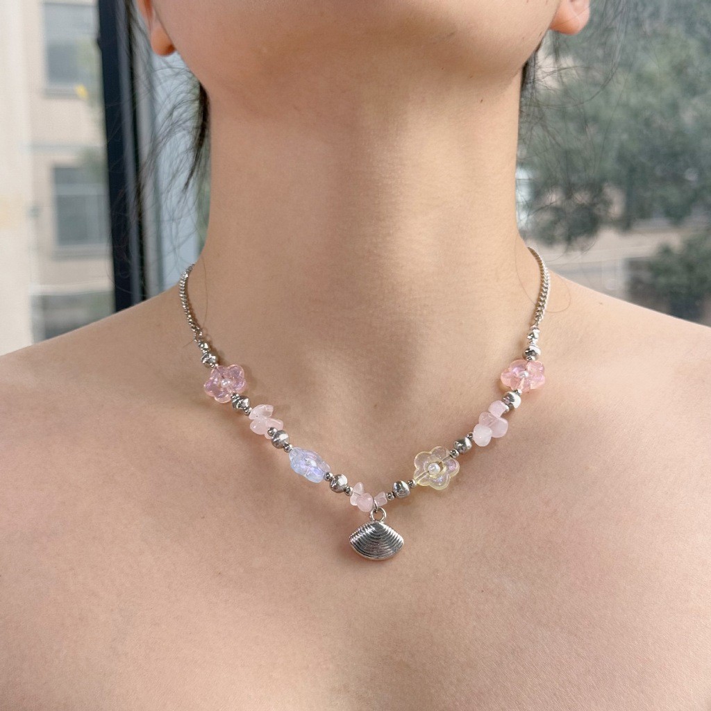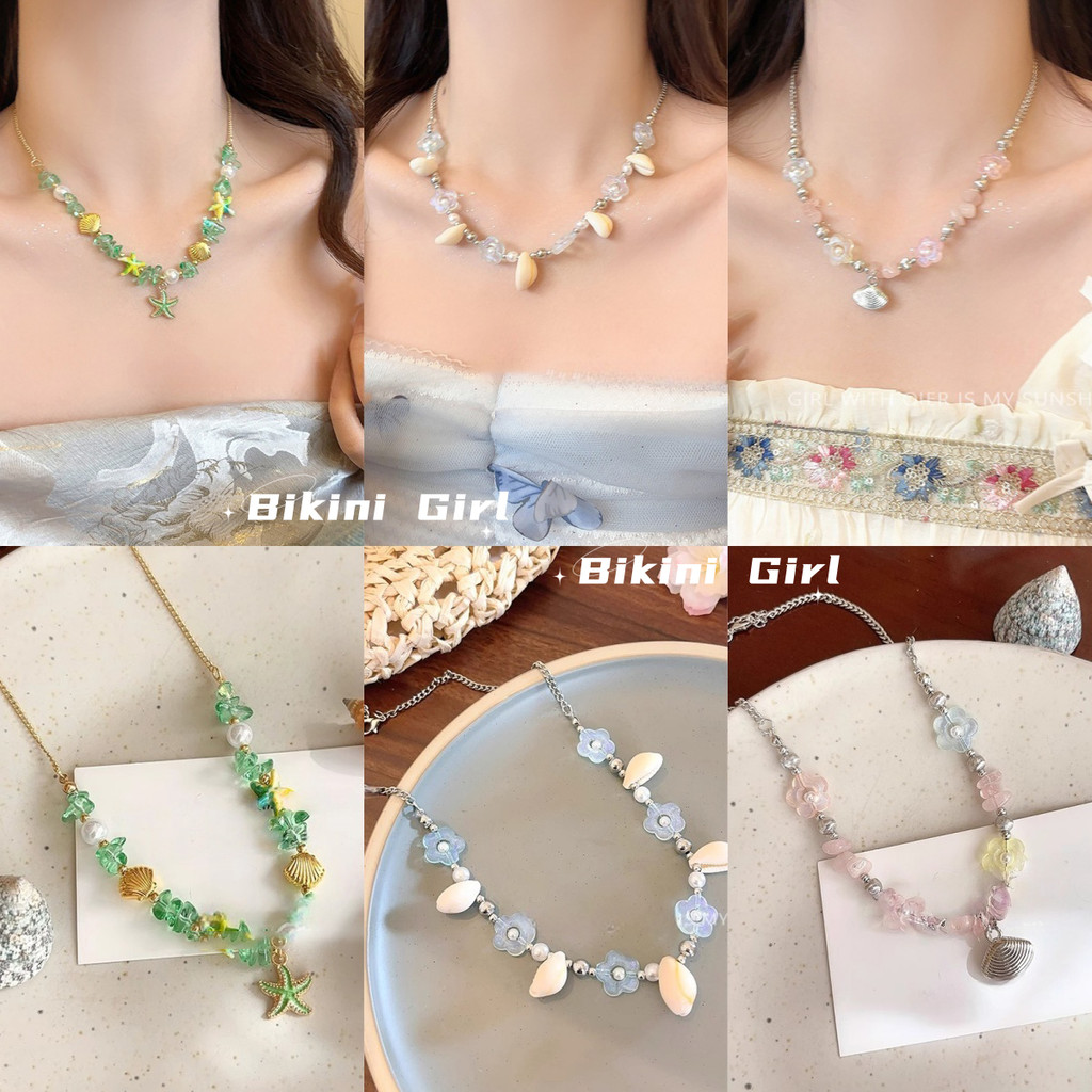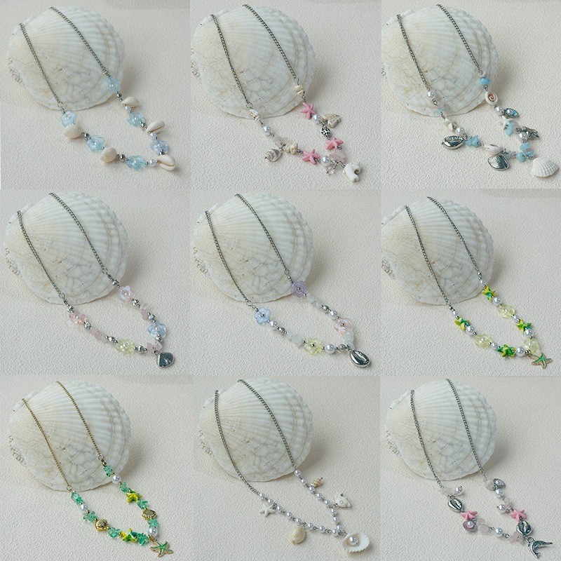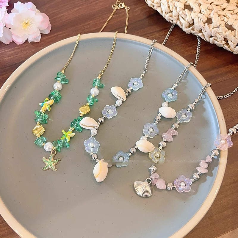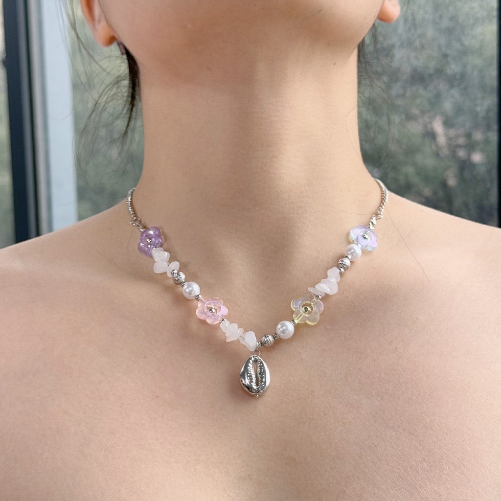 สร้อยคอ เครื่องประดับแฟชั่นผู้หญิง การตกแต่งเปลือกหอย ไปทะเล รูปทรงดอกไม้หลากสไตล์