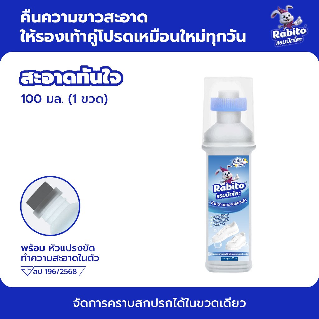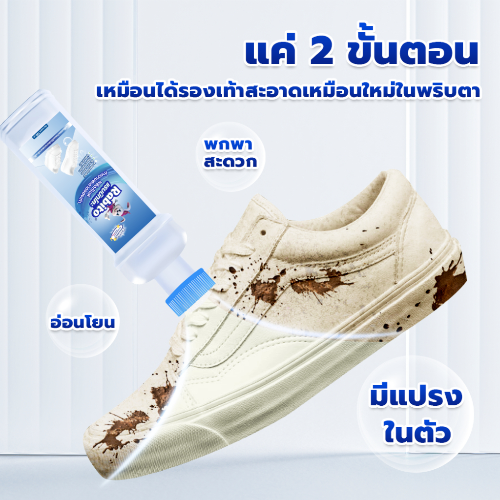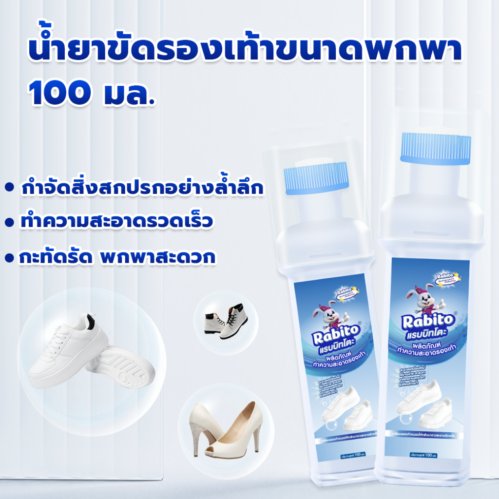 Rabito น้ำยาขัดรองเท้า น้ำยาซักรองเท้า White Shoe Cleaner น้ำยาเช็ดรองเท้า พร้อมหัวแปรงสำหรับขัด 100มล.