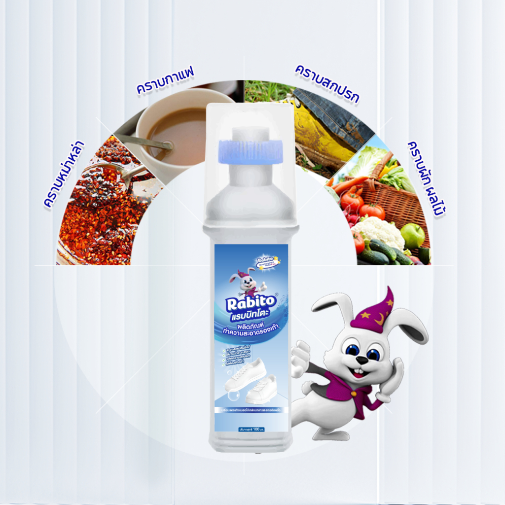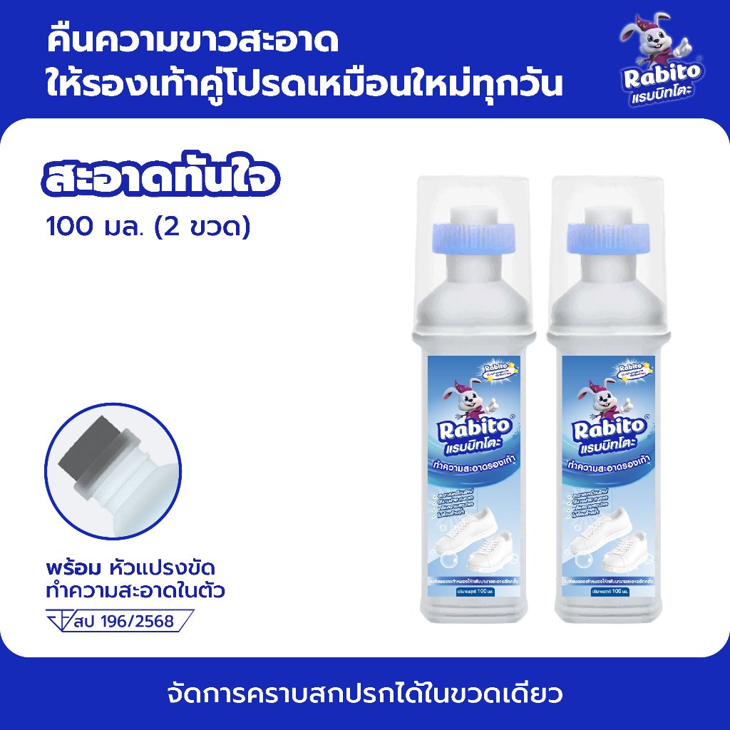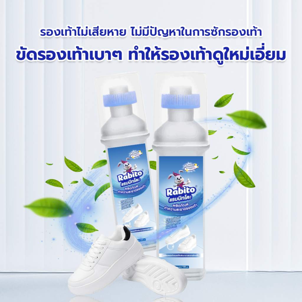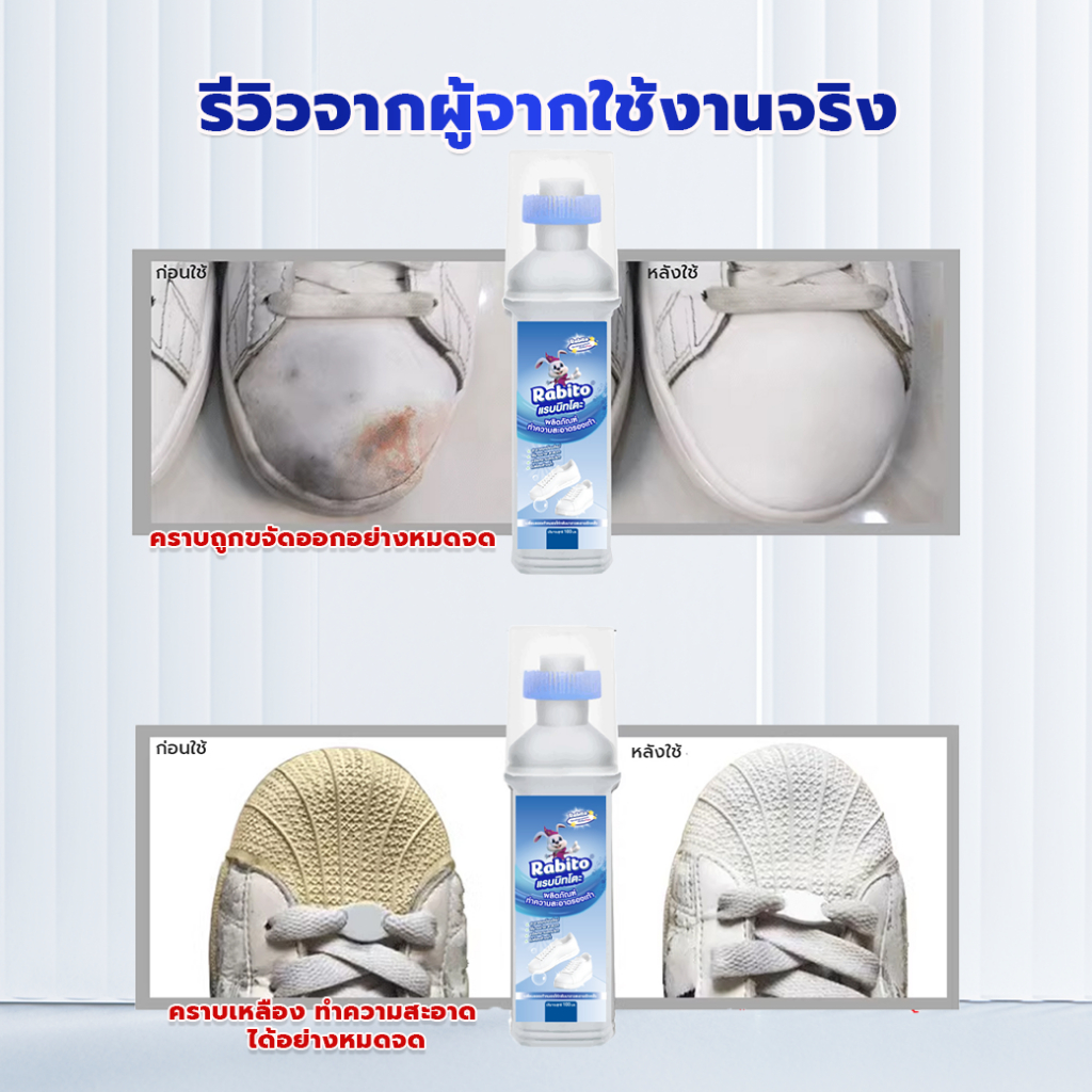 Rabito น้ำยาขัดรองเท้า น้ำยาซักรองเท้า White Shoe Cleaner น้ำยาเช็ดรองเท้า พร้อมหัวแปรงสำหรับขัด 100มล.