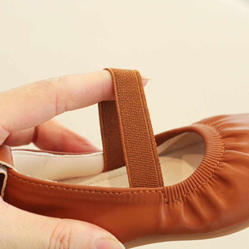 รองเท้าหนังนิ่ม พื้นแบน ยืดหยุ่น ใส่สบาย สไตล์เกาหลี สีพื้น สําหรับเด็กผู้หญิง อายุ 2-16 ปี