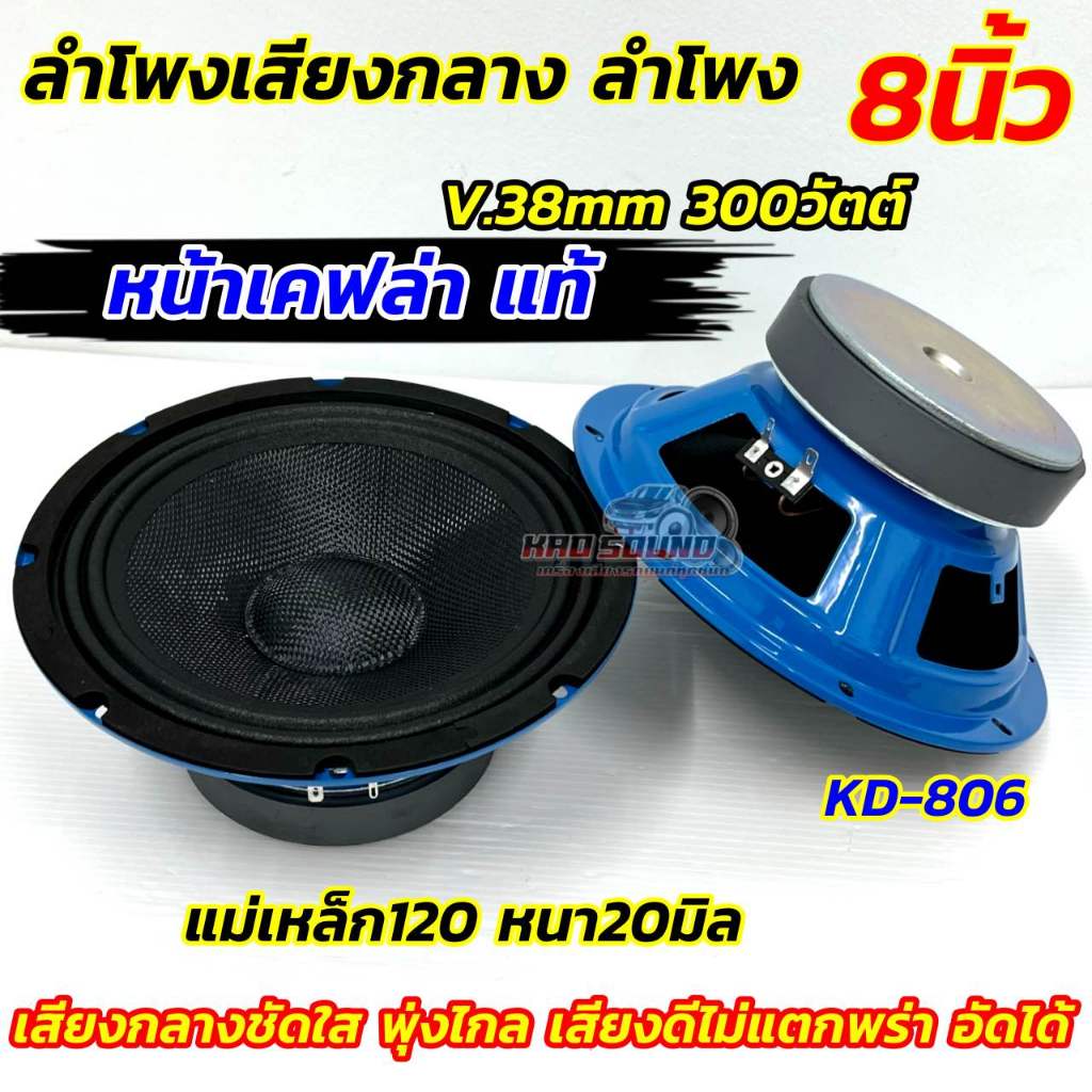 ลำโพงเสียงกลาง ลำโพง 8นิ้ว หน้าเคฟล่าแท้ ดอก 8" KD-806R แม่เหล็ก120x20มิล วอยซ์38มิล กำลังขับ300วัตต์ ลำโพง เสียงกลาง 8"