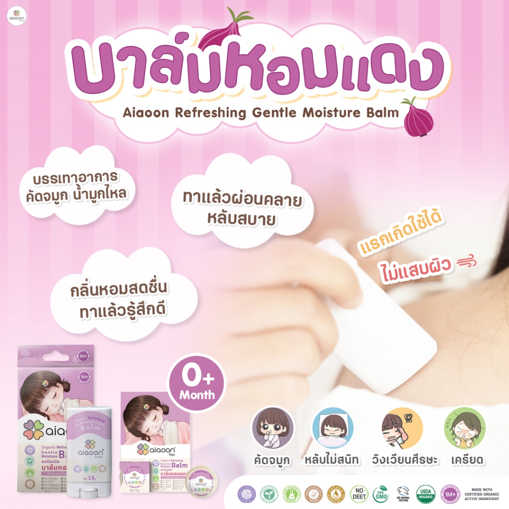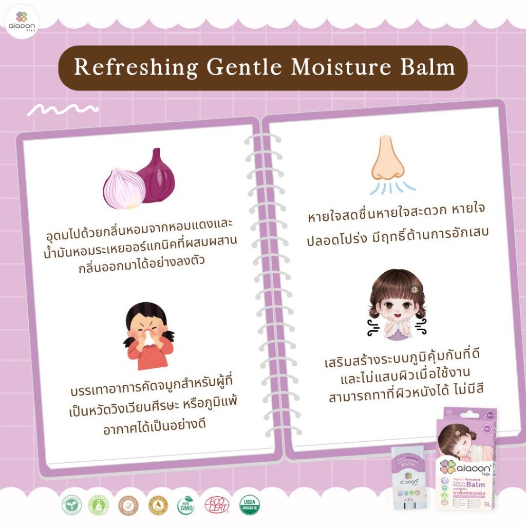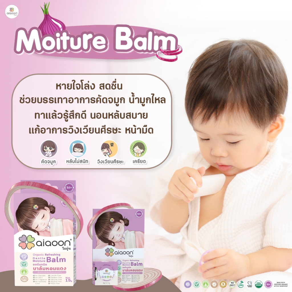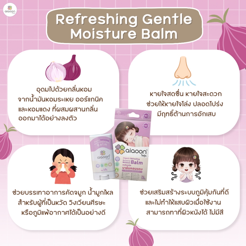 ไออุ่น บาล์มห อมแดง ออร์แกนิค รีเฟรชชิ่ง เจนเทิล มอยเจอร์ บาล์ม 15g.(Organic Refreshing Gentle Moisture Balm)