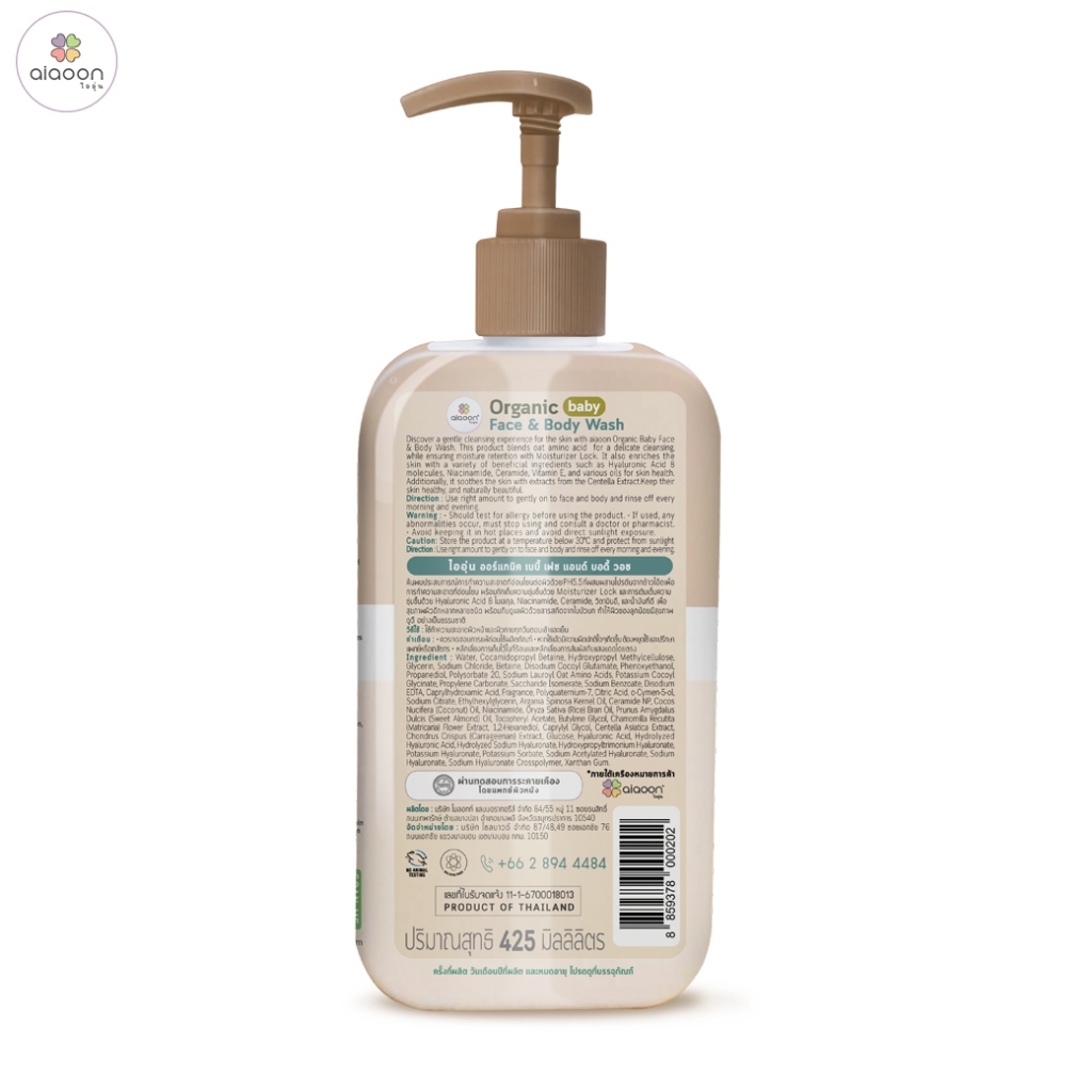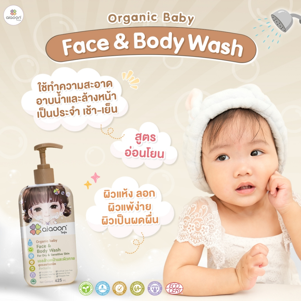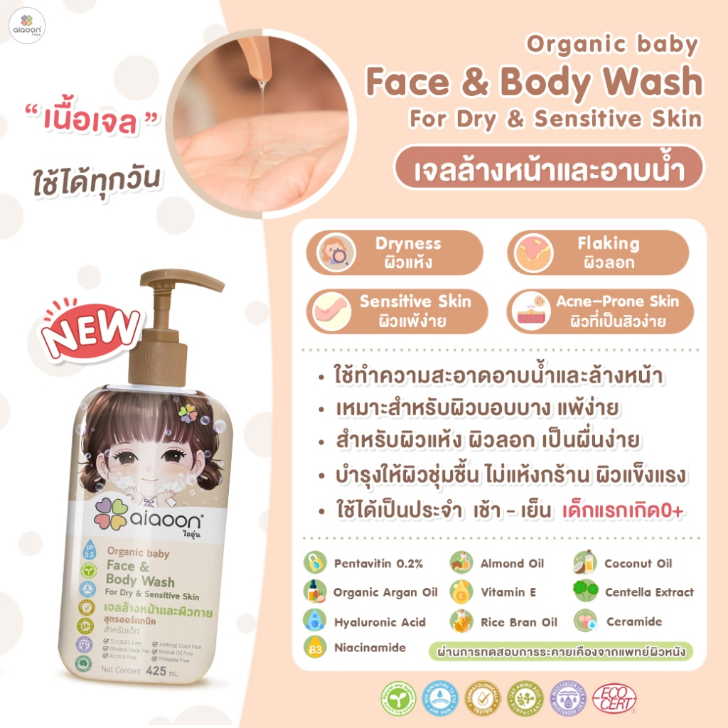 ไออุ่น เจลล้างหน้าและอาบน้ำ สูตรออร์แกนิค สำหรับเด็ก 425ml.(Organic Baby Face & Body Wash For Dry)